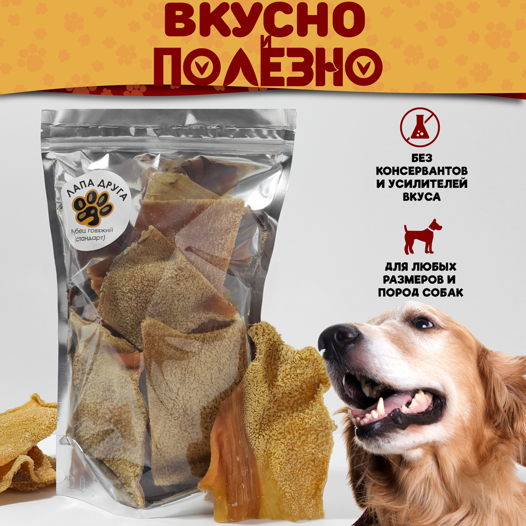 Лакомство "Лапа друга" для собак - Рубец говяжий 300 гр. интересное: