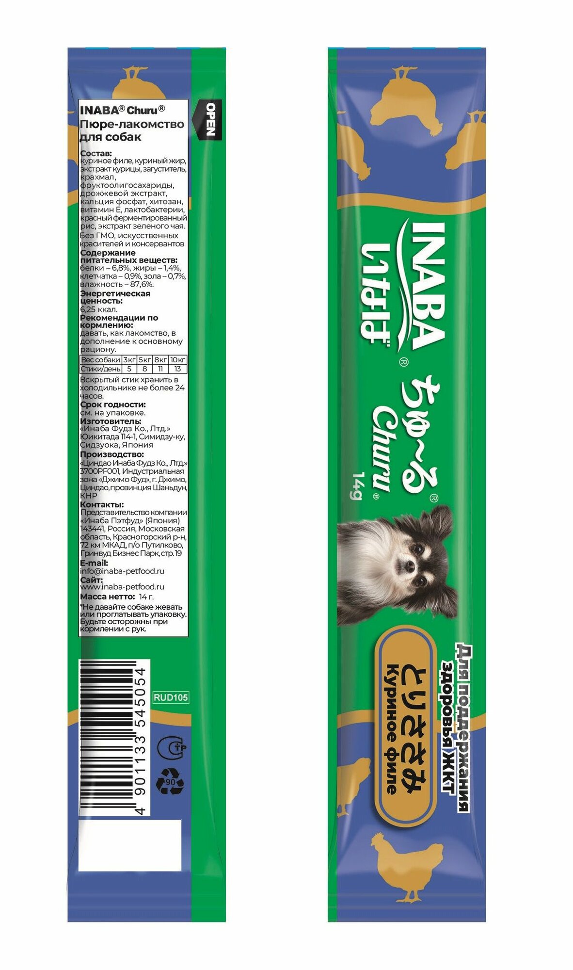 Лакомство для собак пюре INABA Churu Куриное филе для здоровья ЖКТ 14г*4шт интересное: