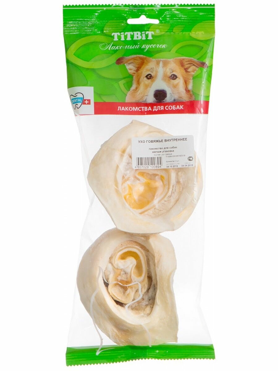 Купить Лакомство TiTBiT Лакомый кусочек Ухо говяжье внутреннее для собак (80 г)
