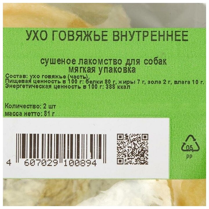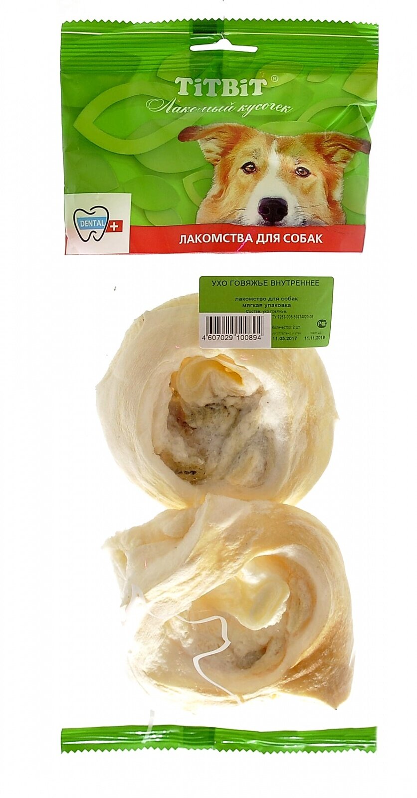 Лакомство TiTBiT Лакомый кусочек Ухо говяжье внутреннее для собак (80 г) интересное:
