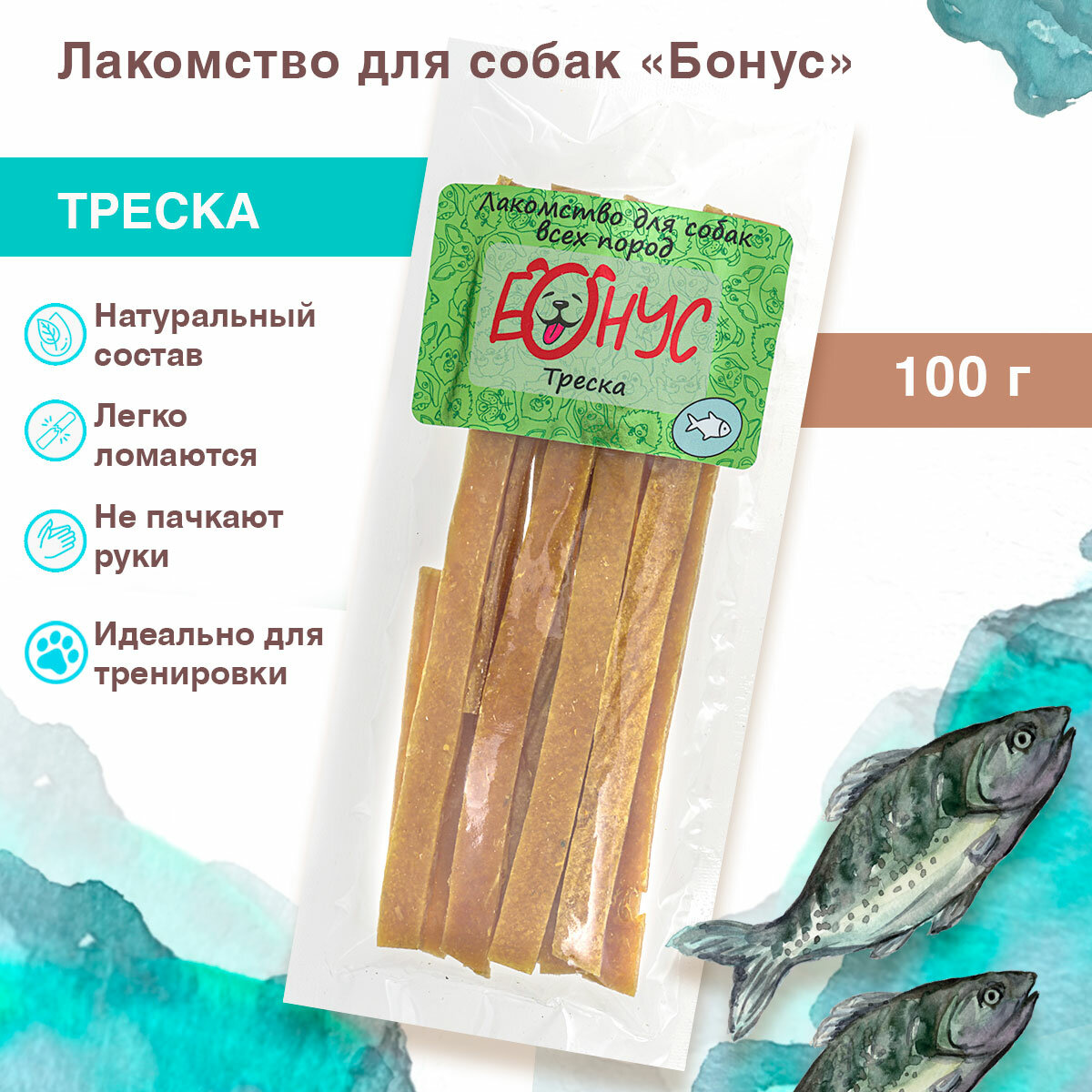 Лакомства для собак бонус полоски Треска 100г интересное: