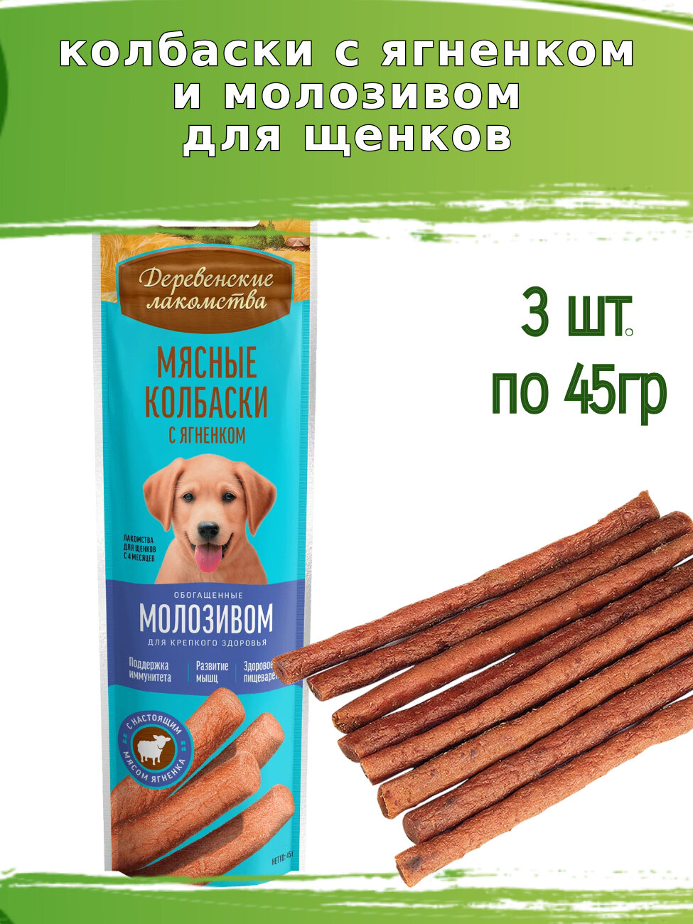 Купить Деревенские лакомства для щенков 3 шт по 45г, колбаски с ягненком и молозивом