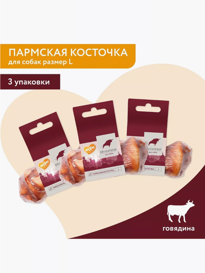 Лакомство для собак Мнямс Деликатес Пармская косточка L, 3 шт х 45 гр интересное: