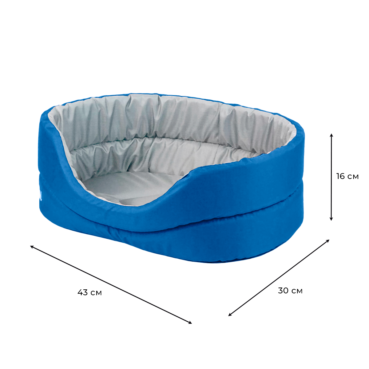 Лежанка овальная для собак и кошек ZOOexpress Oxford №1, 40х27х16 см, синий/серый