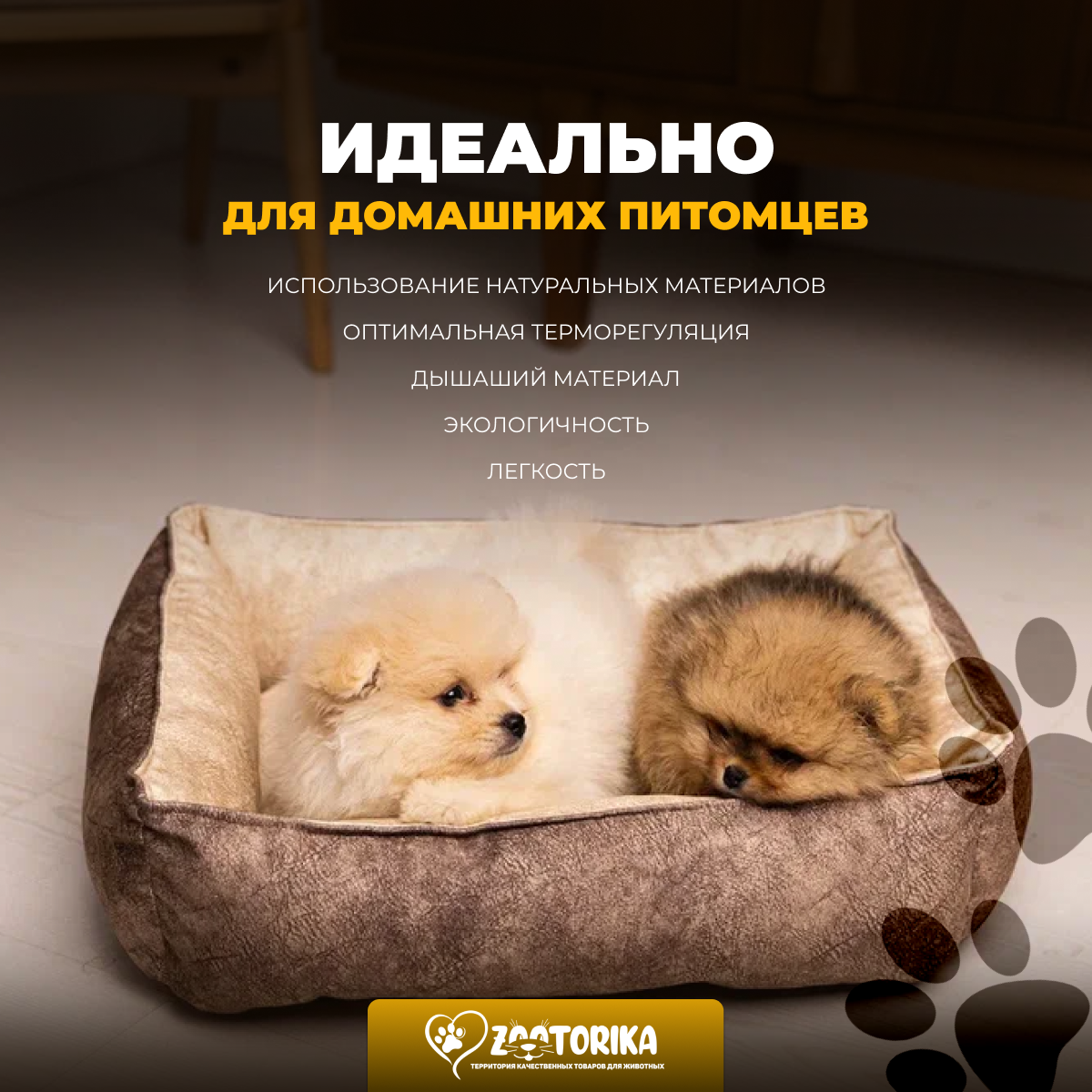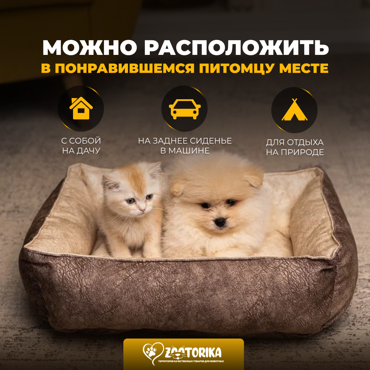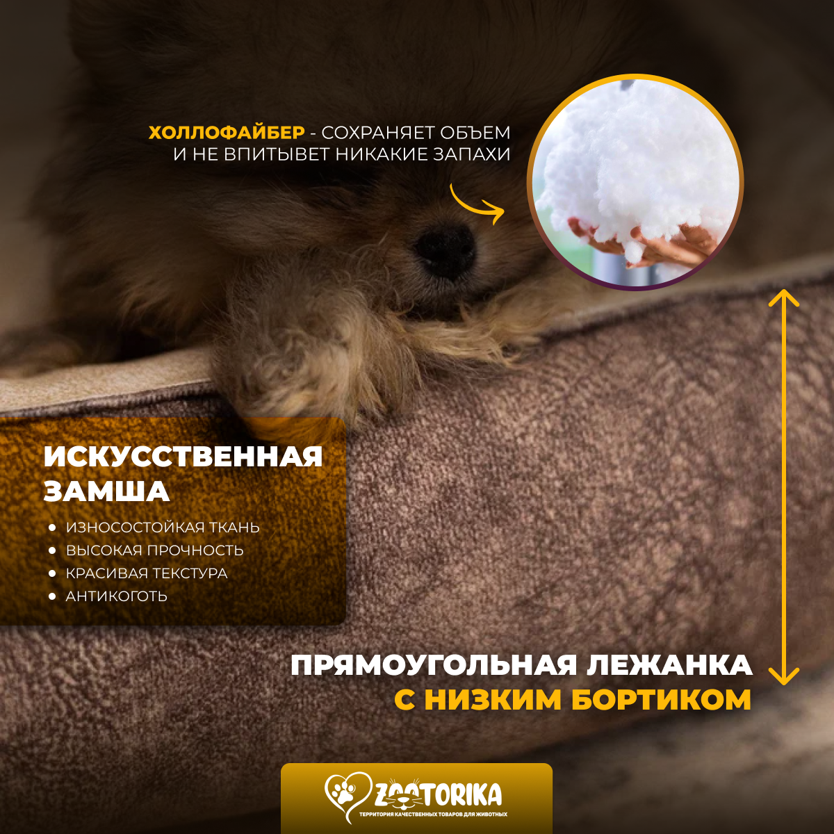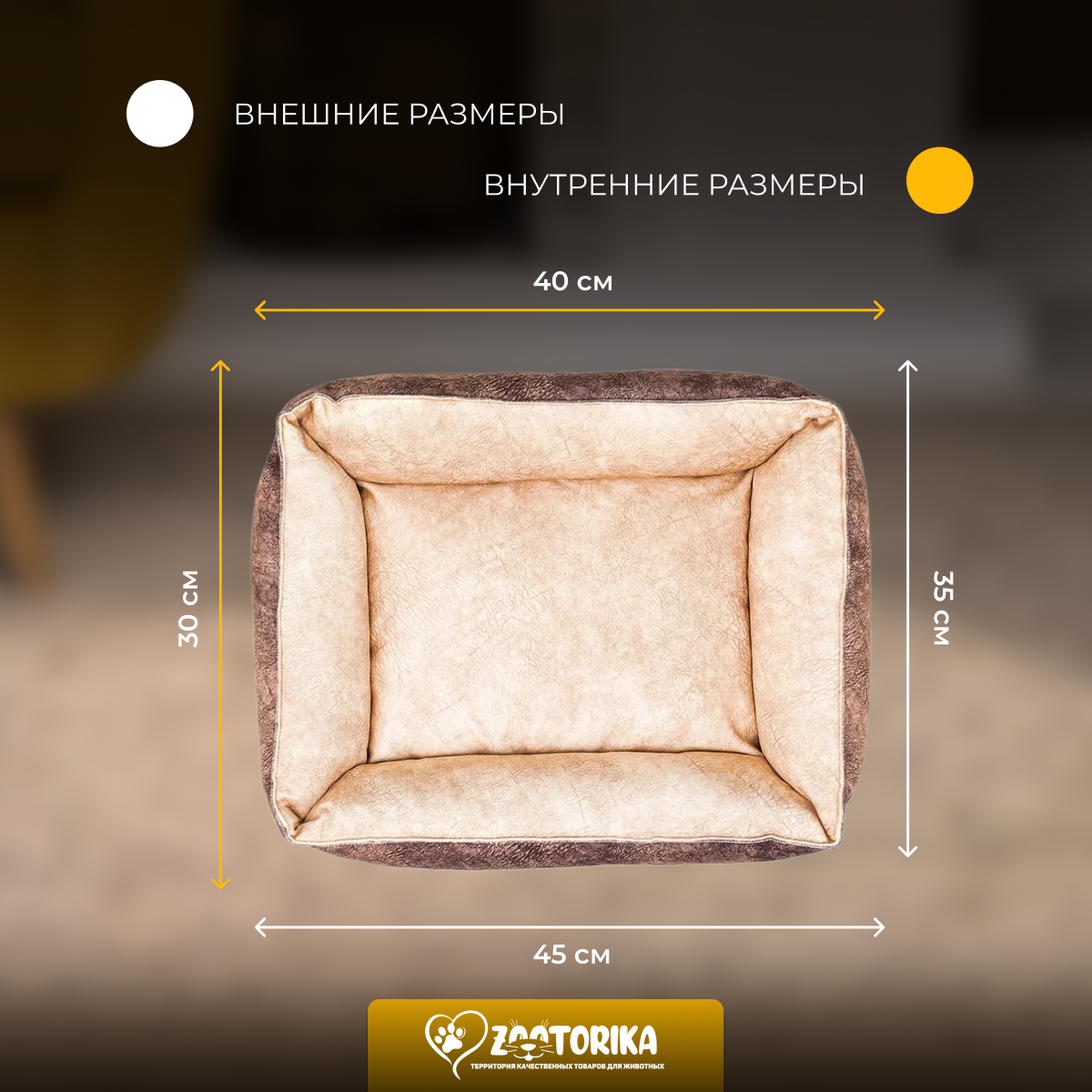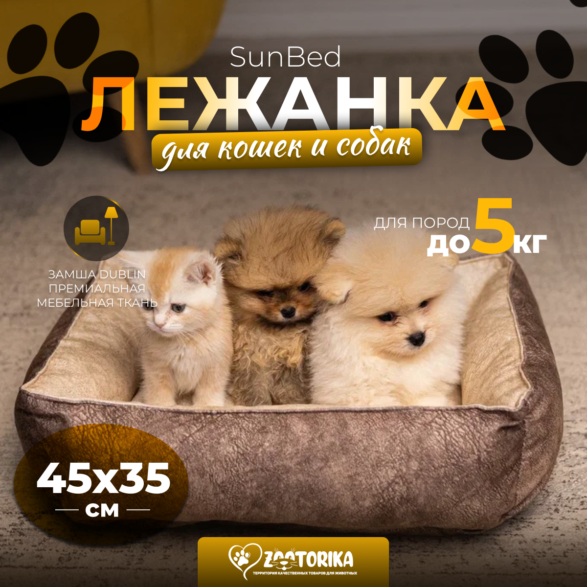 Лежанка для кошек и собак SunBed прямоугольная из замши, бежевый меланж, 45х35 / Лежак для животных мелких пород интересное: