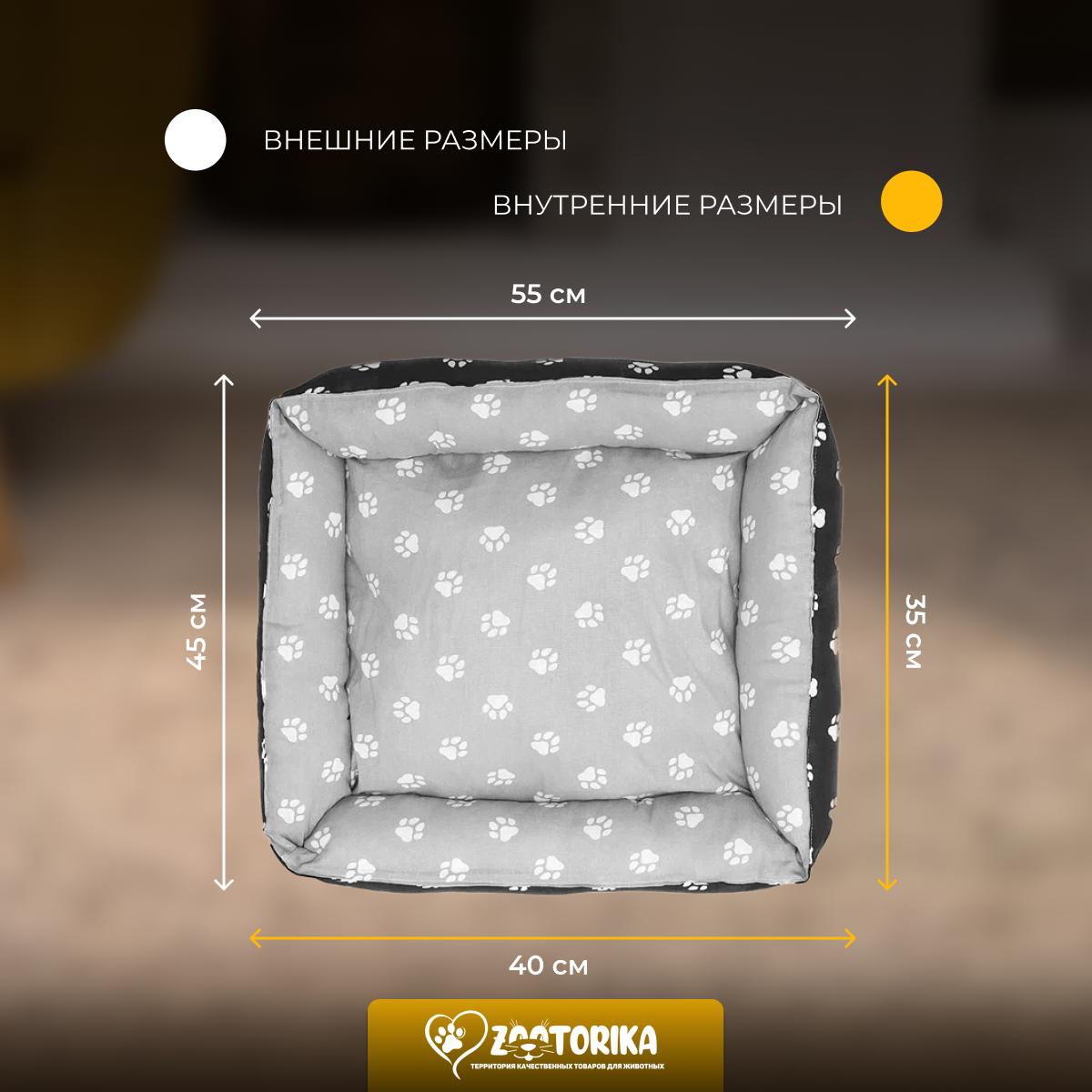 Лежанка для кошек и собак SunBed прямоугольная "Лапки", серая, 55х45 / Лежак для животных мелких и средних пород