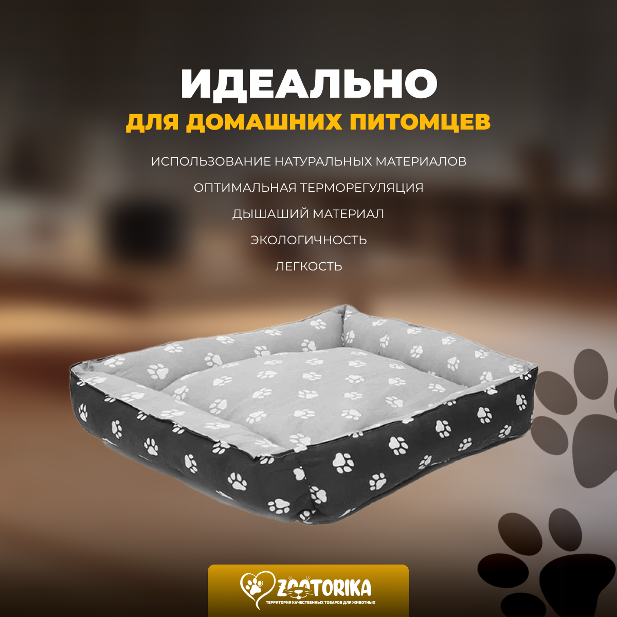 СохранитьЛежанка для кошек и собак SunBed прямоугольная "Лапки", черная/серая, 55х45 / Лежак для животных мелких и средних пород интересное: