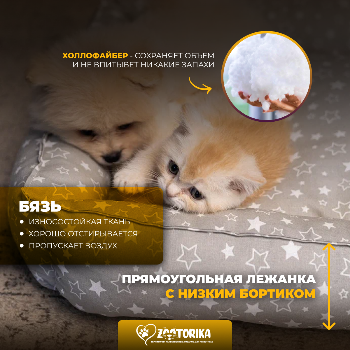 СохранитьЛежанка для кошек и собак SunBed прямоугольная "Звездопад", серая, 55х45 / Лежак для животных мелких и средних пород интересное:
