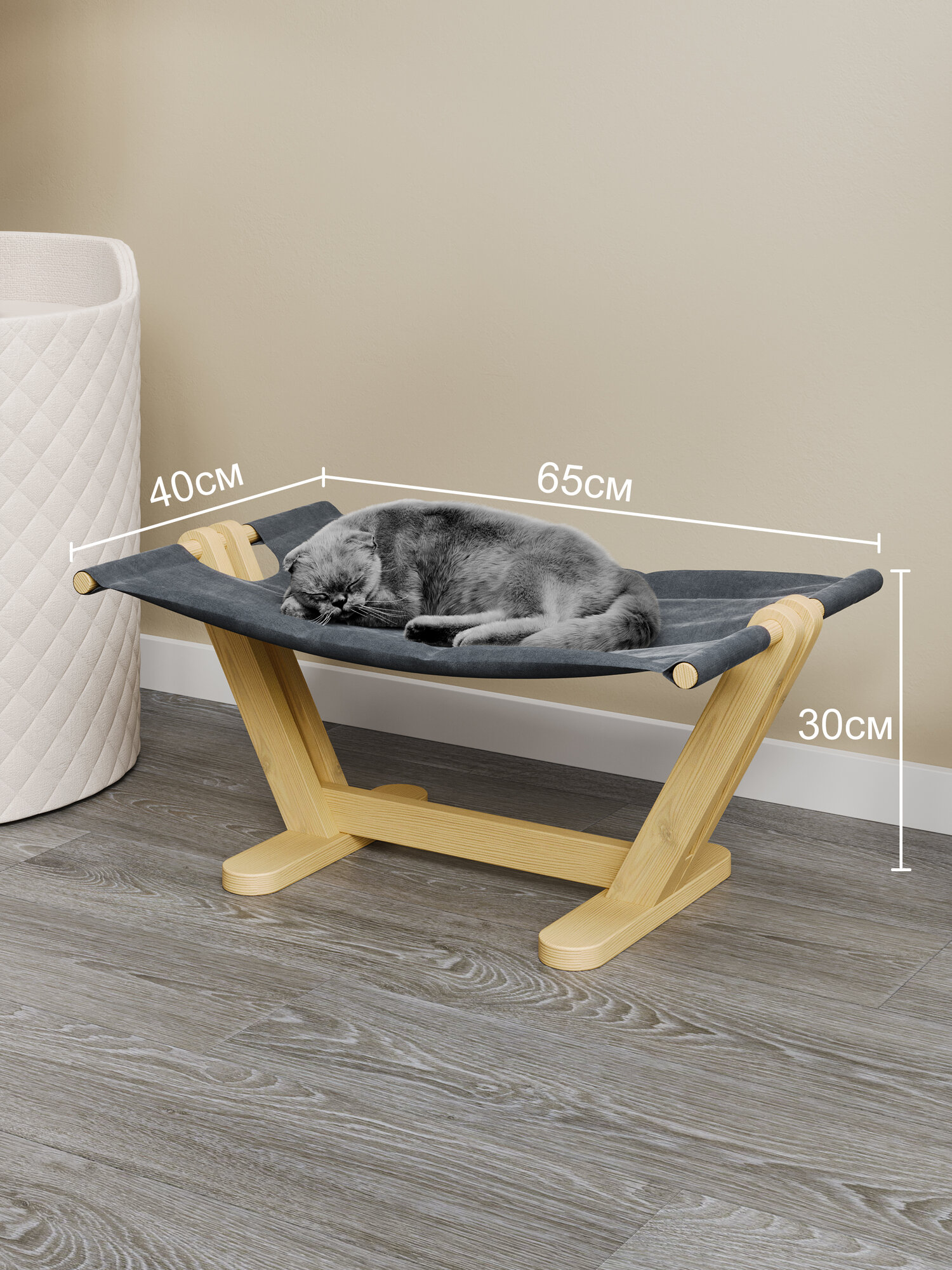 Гамак для котов и собак "Серый", прямоугольный, размер 30х40х65, материал дерево и ткань интересное: