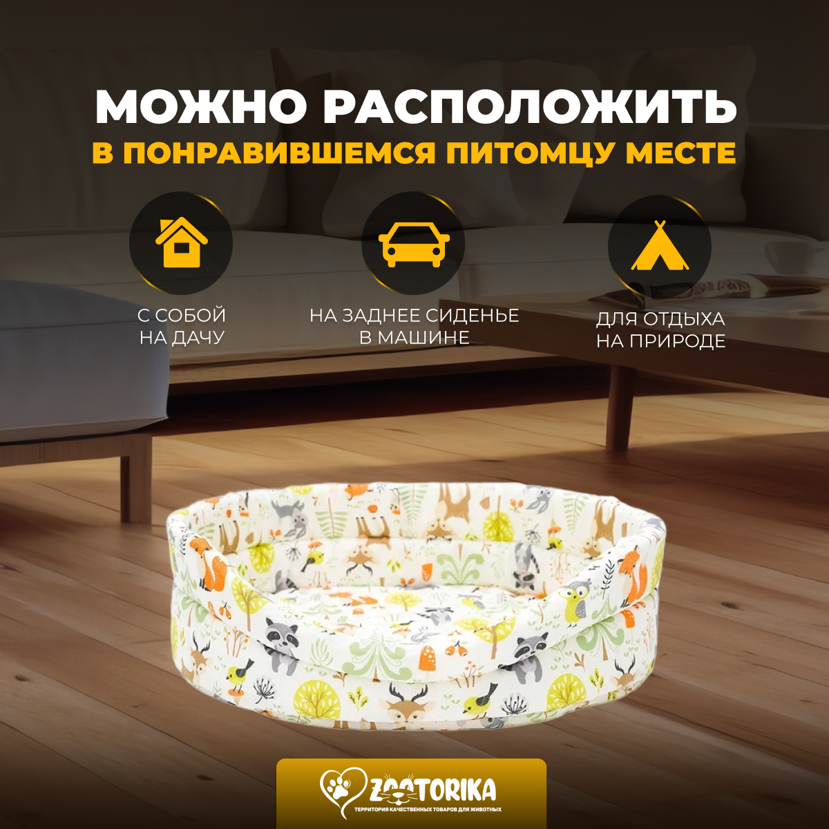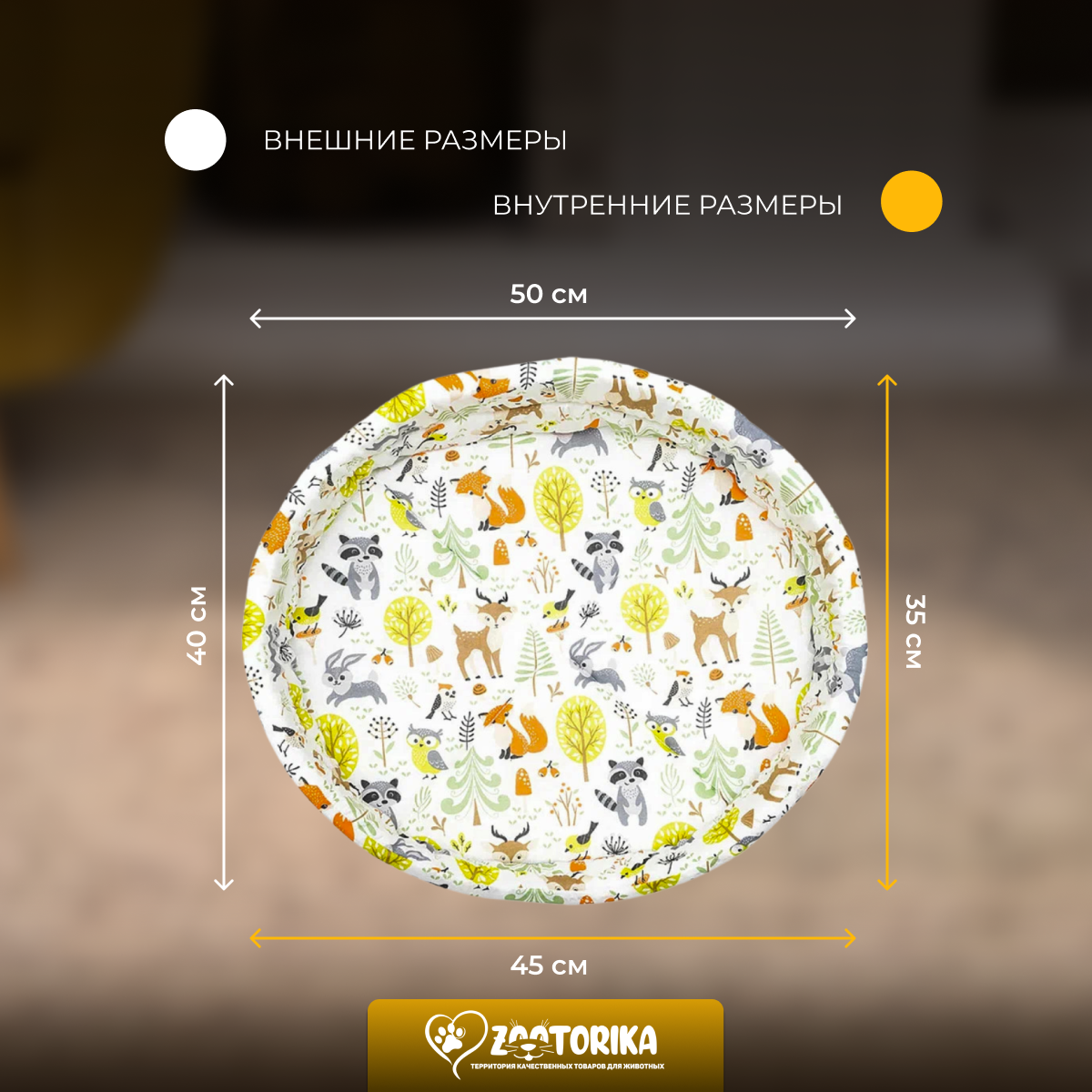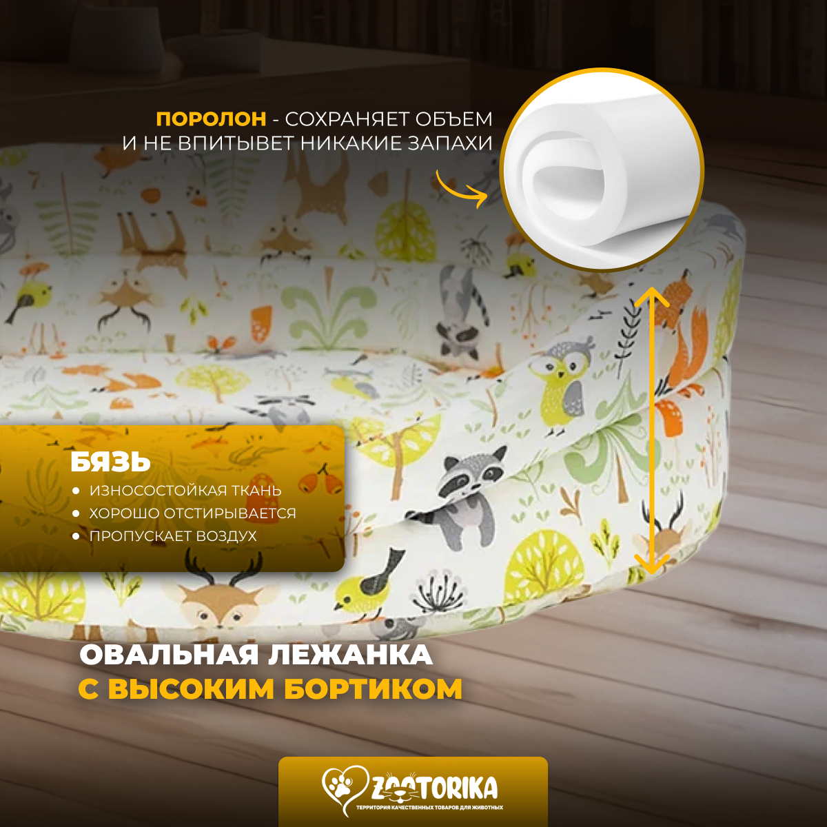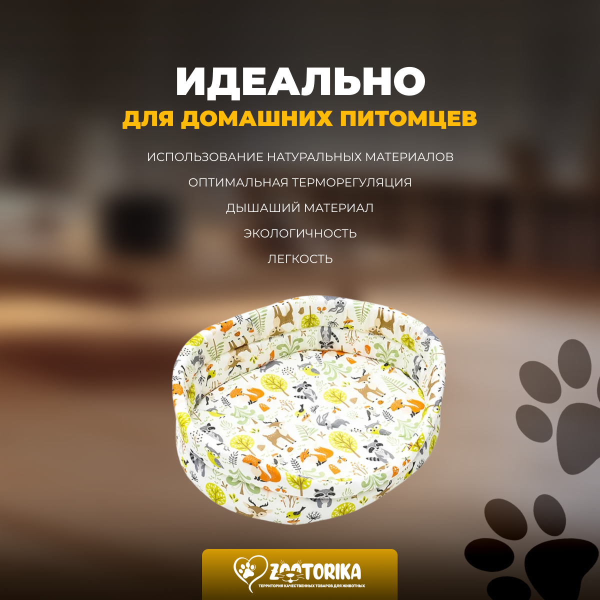 СохранитьЛежанка для кошек и собак TerraBed овальная "Сказочный лес", белая, 50х40 / Лежак для животных мелких пород интересное: