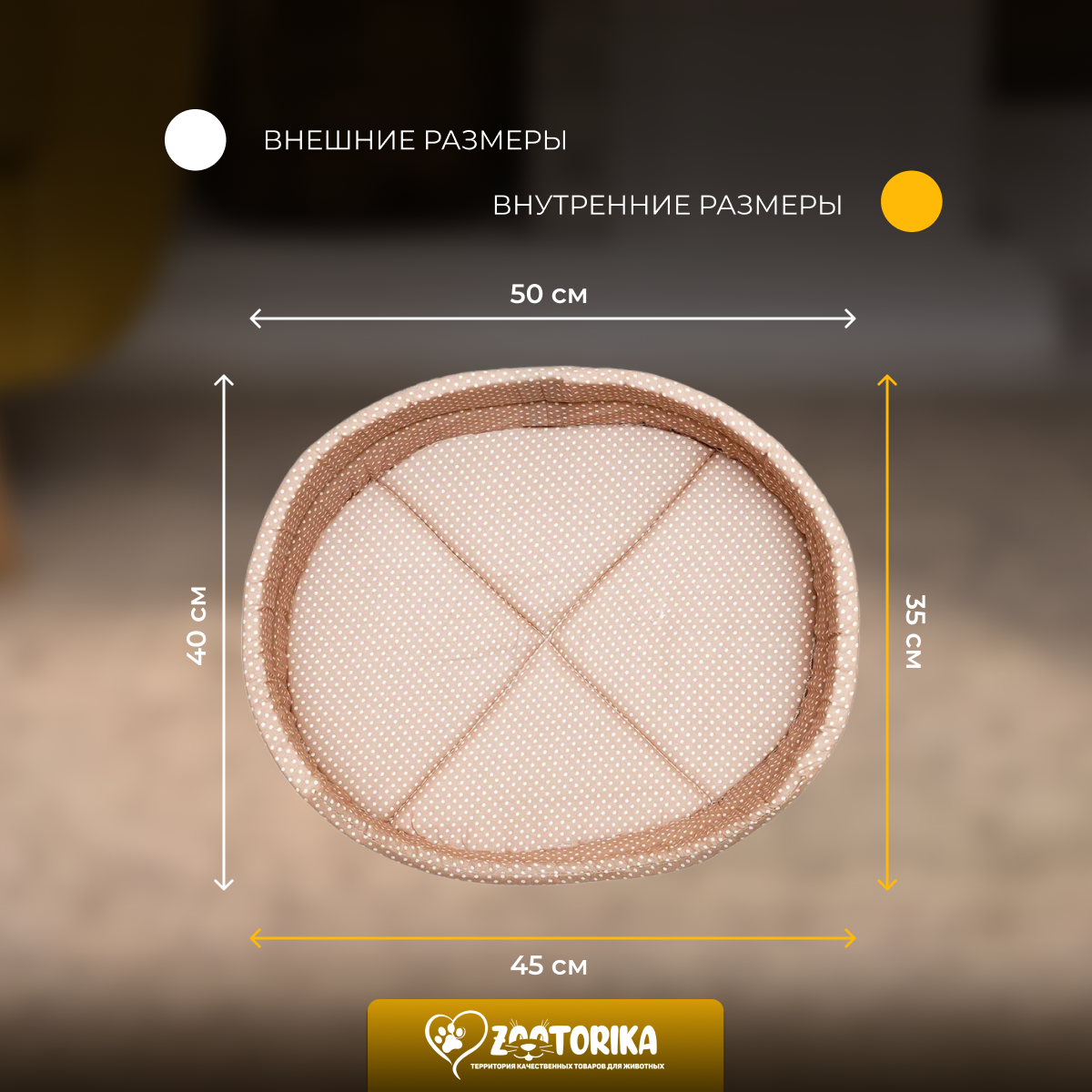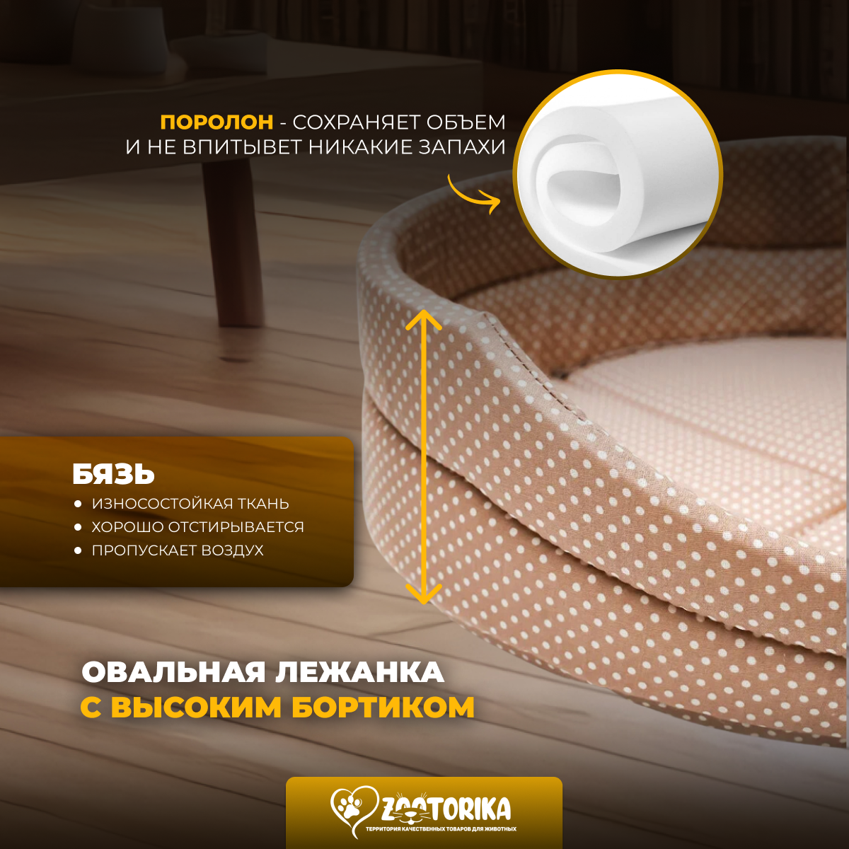 СохранитьЛежанка для кошек и собак TerraBed овальная "Горошек", коричневая, 50х40 / Лежак для животных мелких пород интересное: