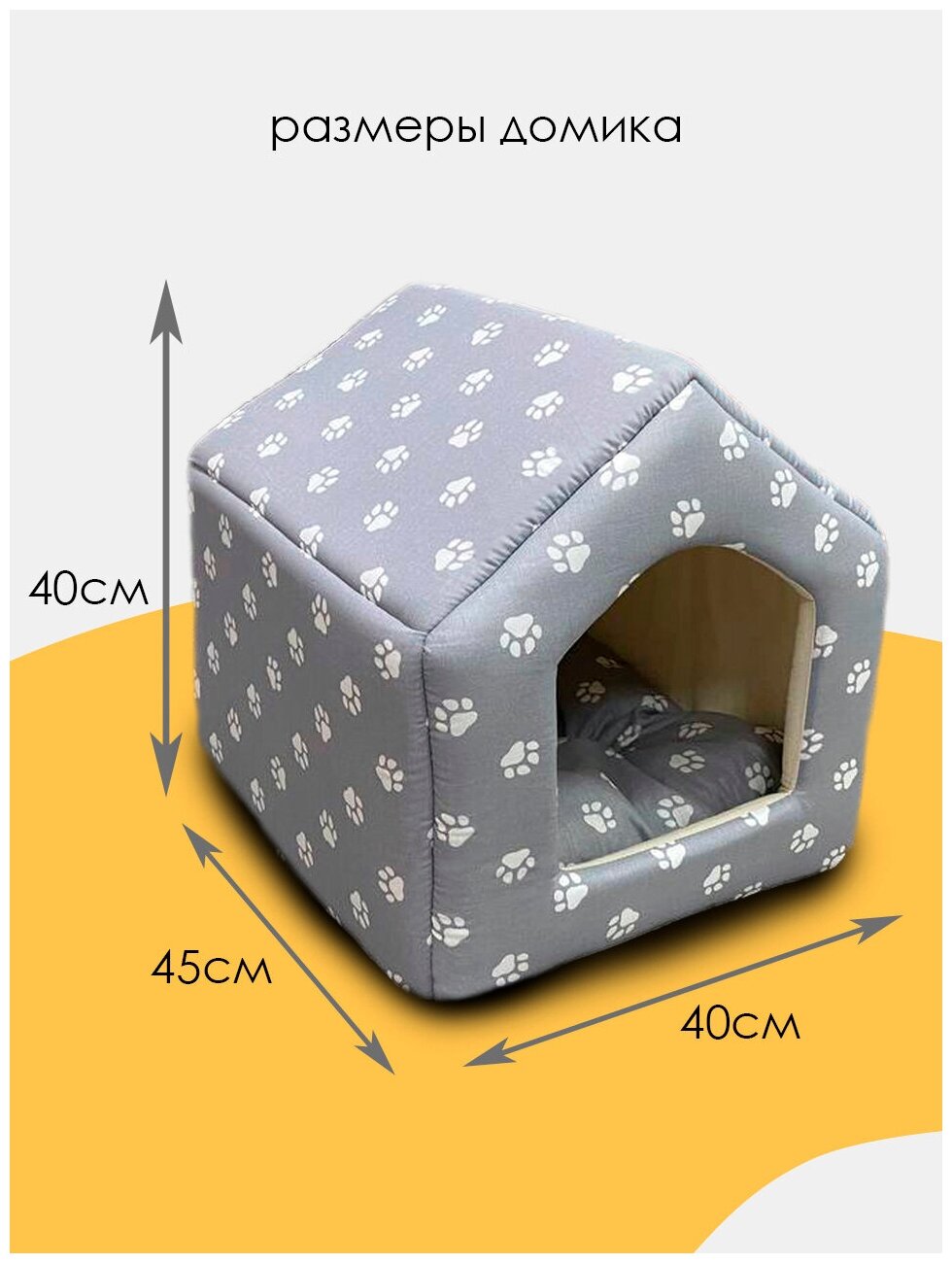 Купить Домик для собак мелких пород, для кошек "Будка" 40х45х40, серые лапки UFAMUR