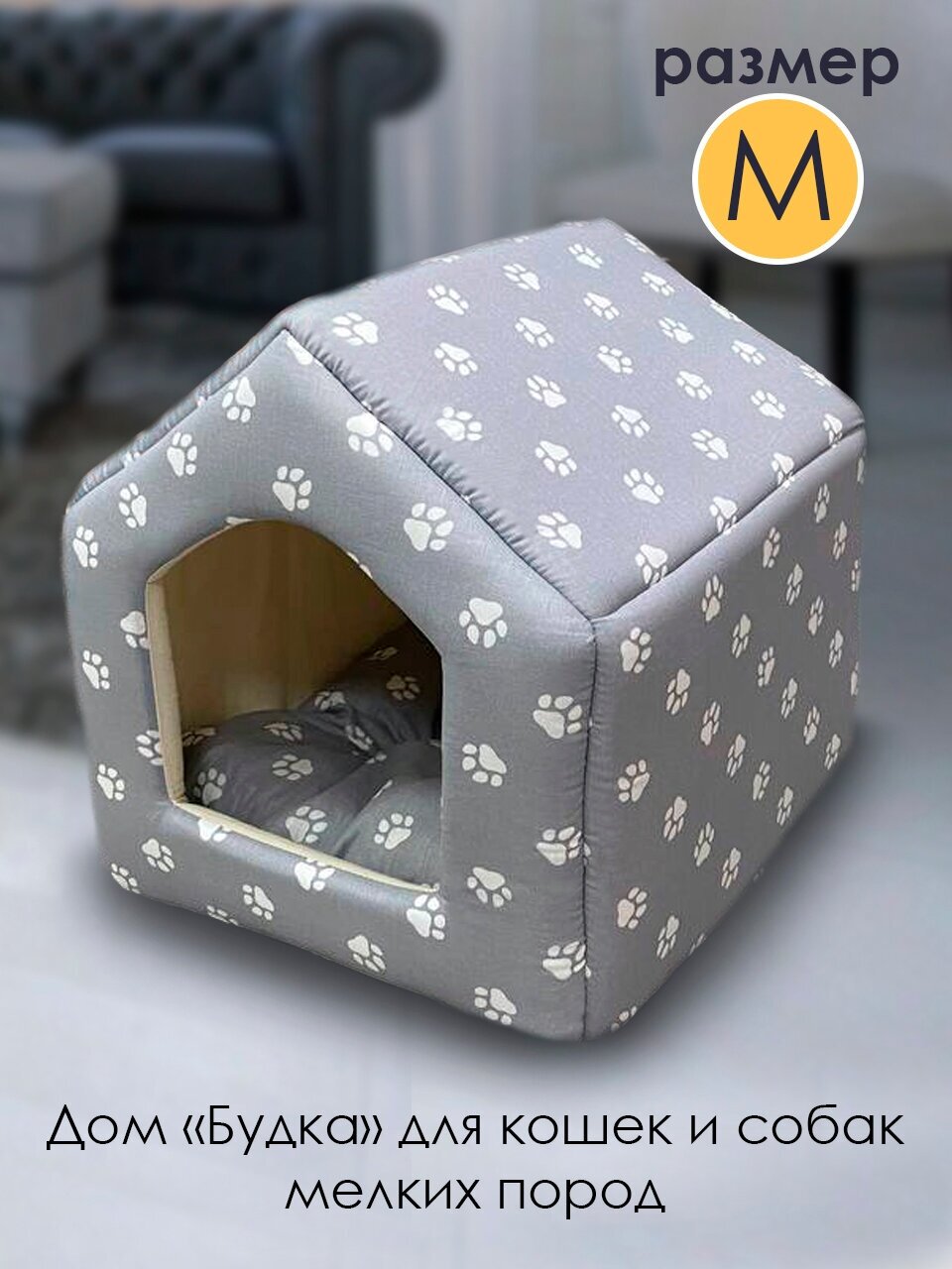 Домик для собак мелких пород, для кошек "Будка" 40х45х40, серые лапки UFAMUR интересное: