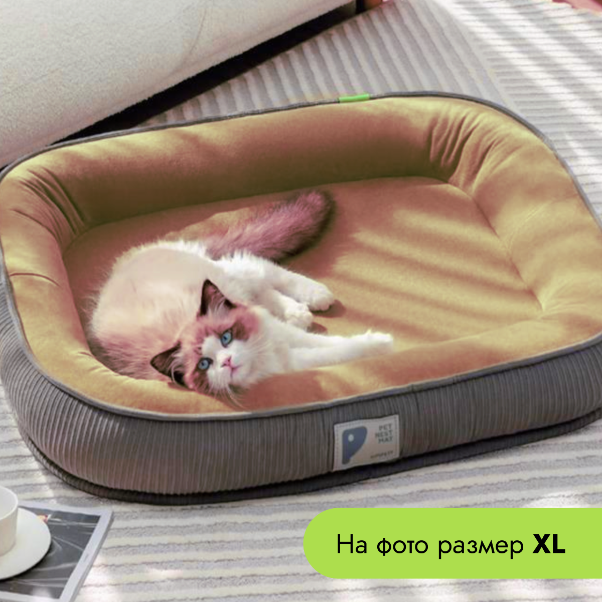 Лежанка для животных, собак и кошек, со съемным чехлом, Серо-бежевая, М (50х40х14 см) интересное: