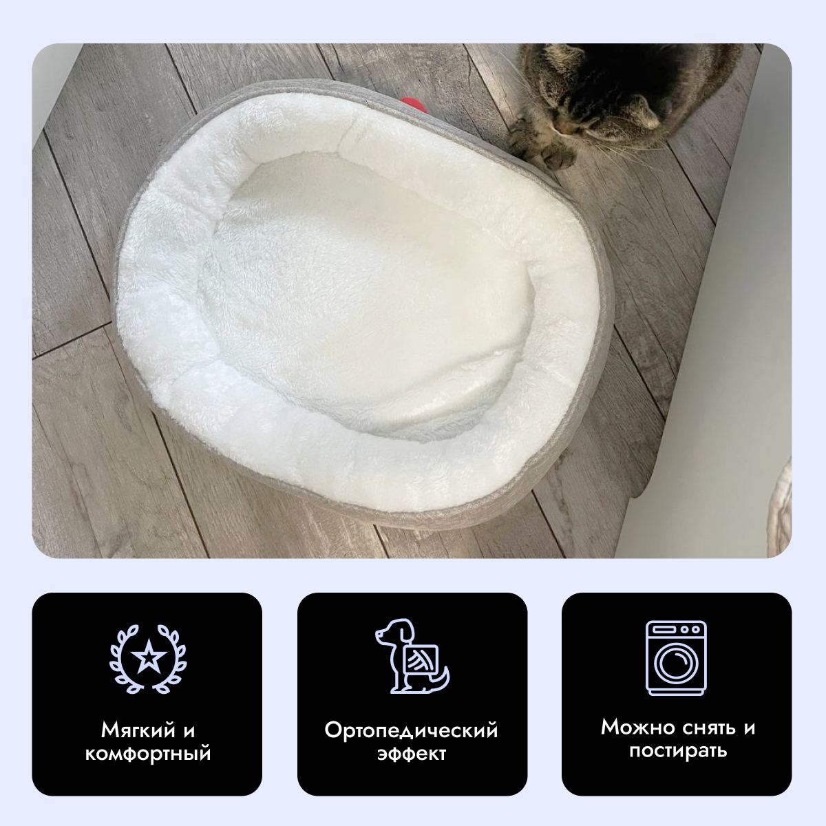 Лежанка для животных, собак и кошек, со съемным чехлом из рогожки, Бело-бежевая, М (50х40х14 см) интересное:
