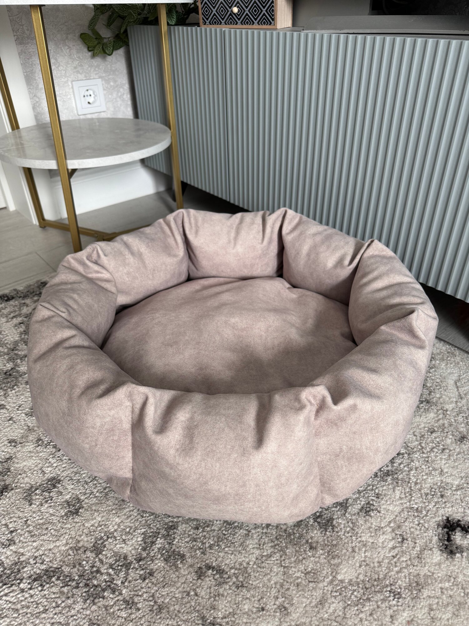 Лежанка для собак и кошек, размер 60 на 60, цвет бежевый, антивандальный велюр, мебельная ткань