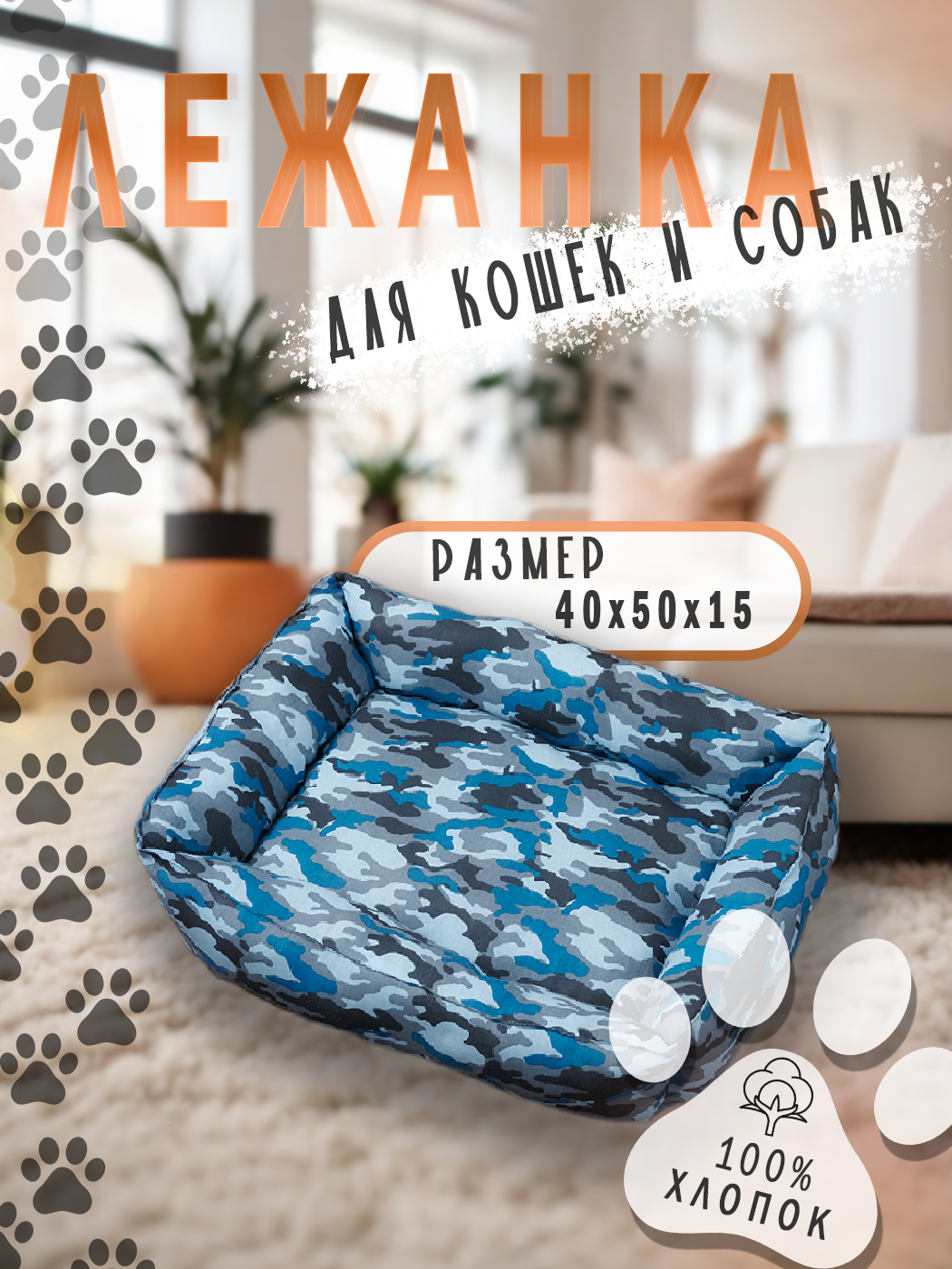 Лежанка для кошек и мелких пород собак 40*50*15см, двухсторонняя, Камуфляж интересное: