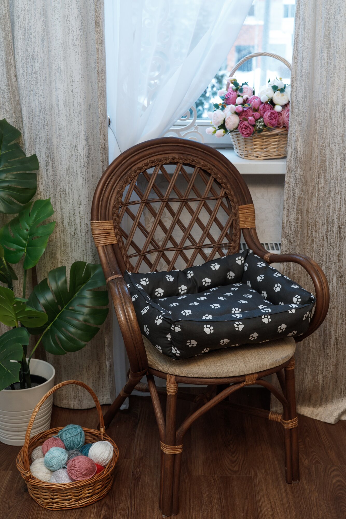 Лежанка для кошек и мелких пород собак 40*50*15см, двухсторонняя, Черная с лапками интересное: