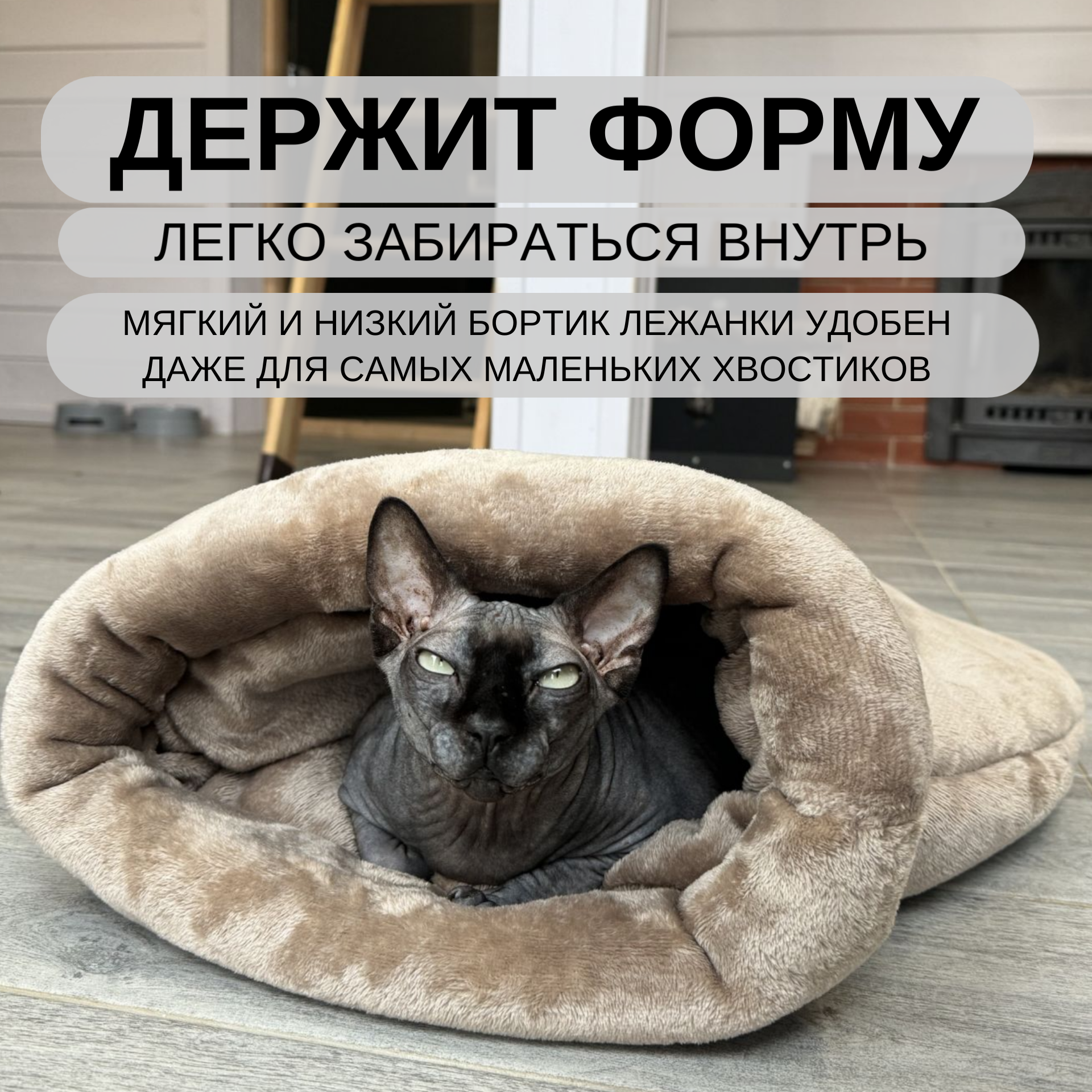 Лежанка для кошек и собак Emmy Stil, овальная, бежевая, с бортиком, велсофт/синтепон интересное: