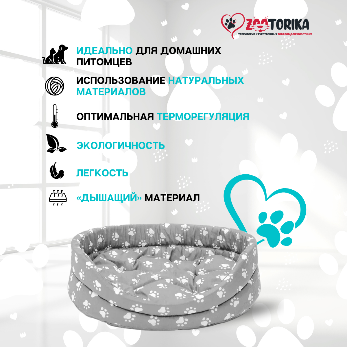 Купить Лежанка для кошек и собак TerraBed овальная с подушкой "Лапки", серая, 50х40 / Лежак для животных мелких пород