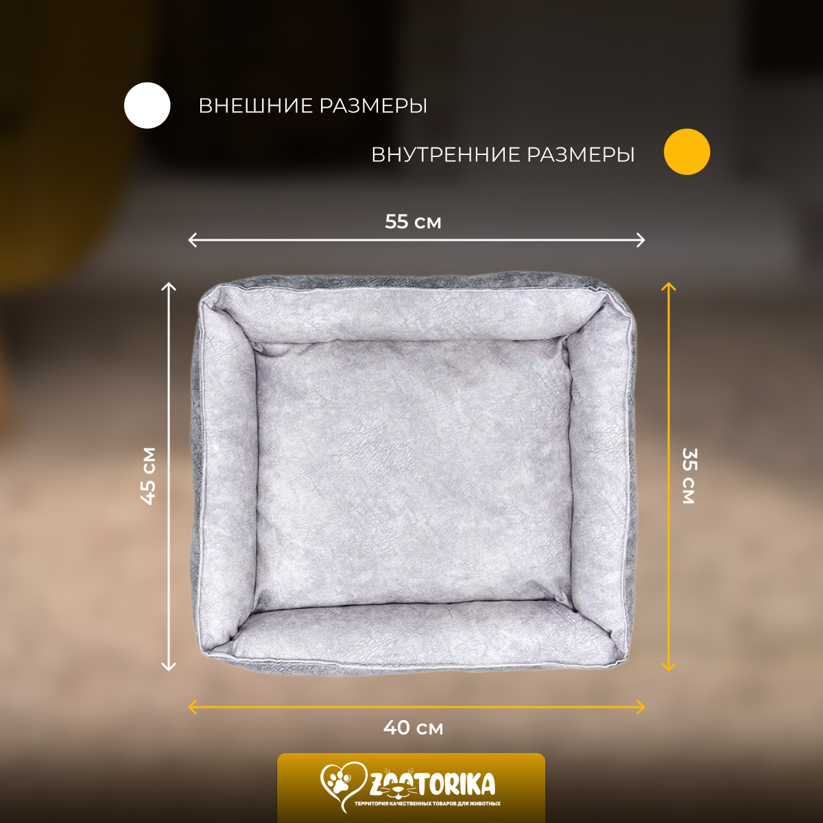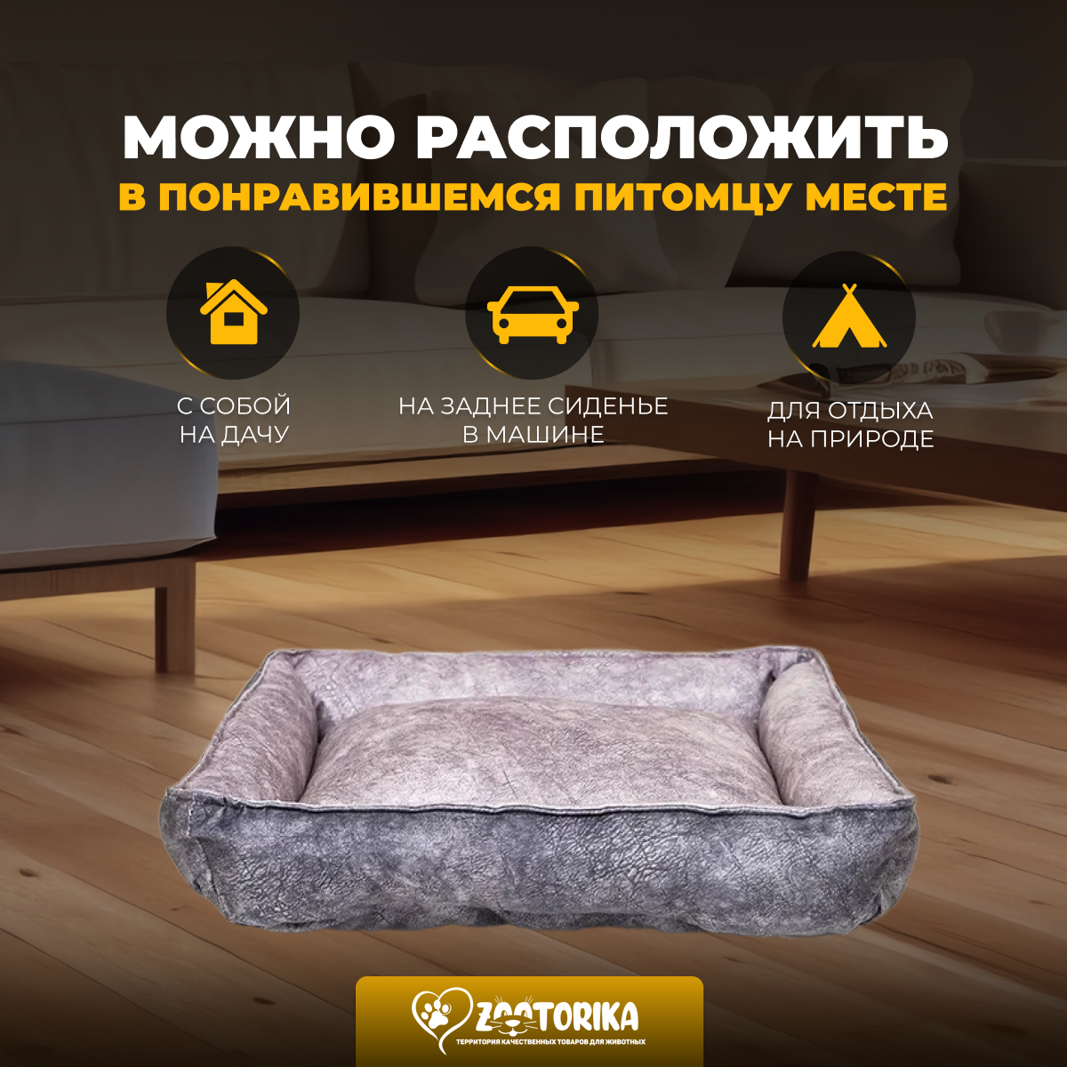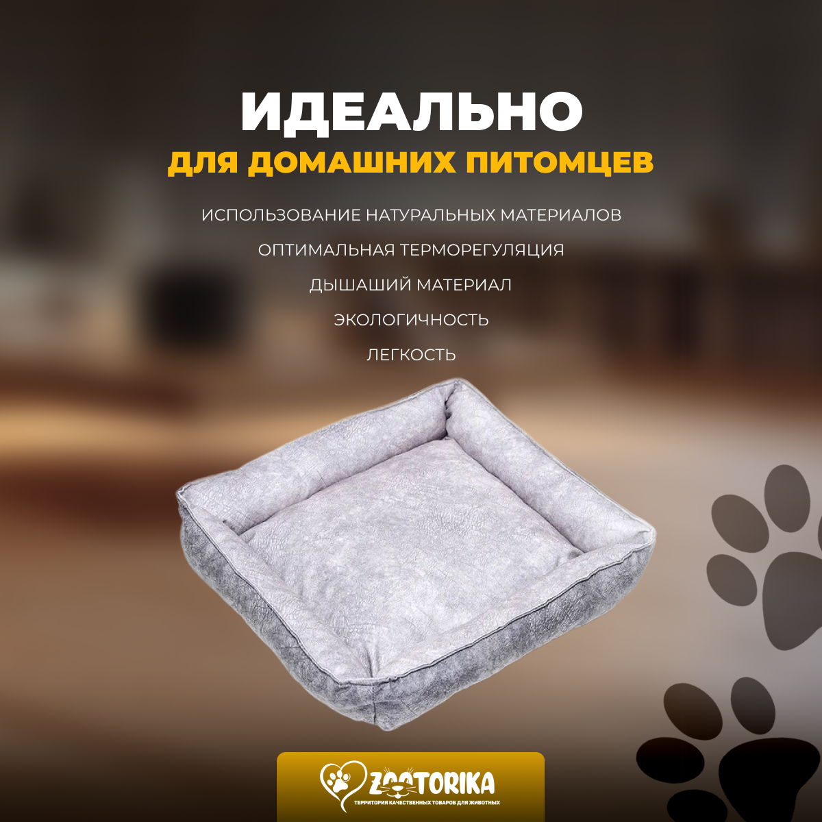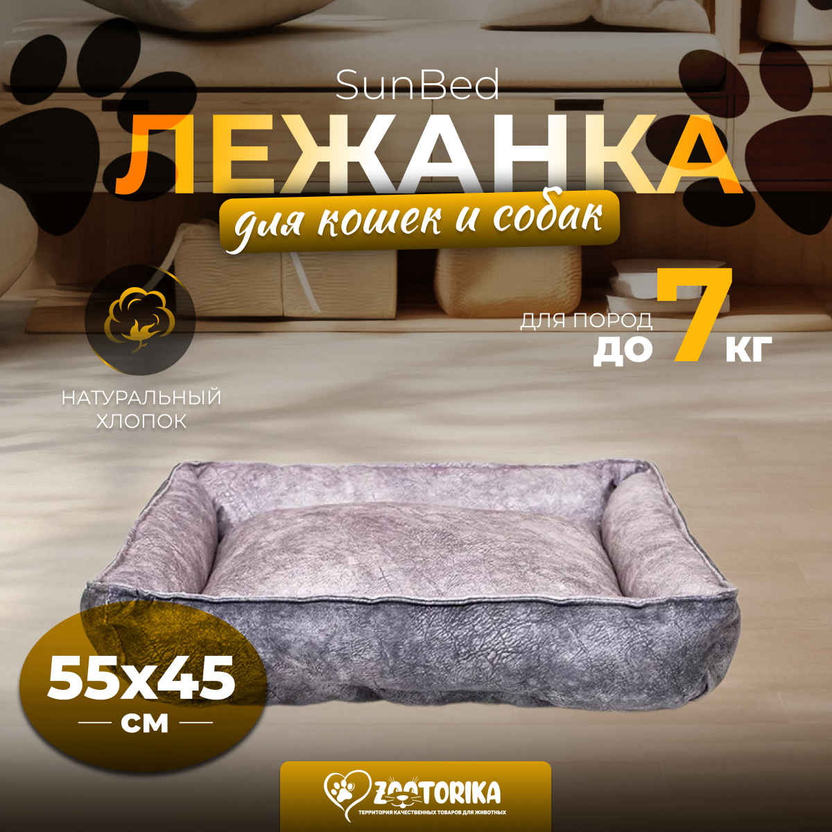 Лежанка для кошек и собак SunBed прямоугольная из замши, серый меланж, 55х45 / Лежак для животных мелких и средних пород интересное: