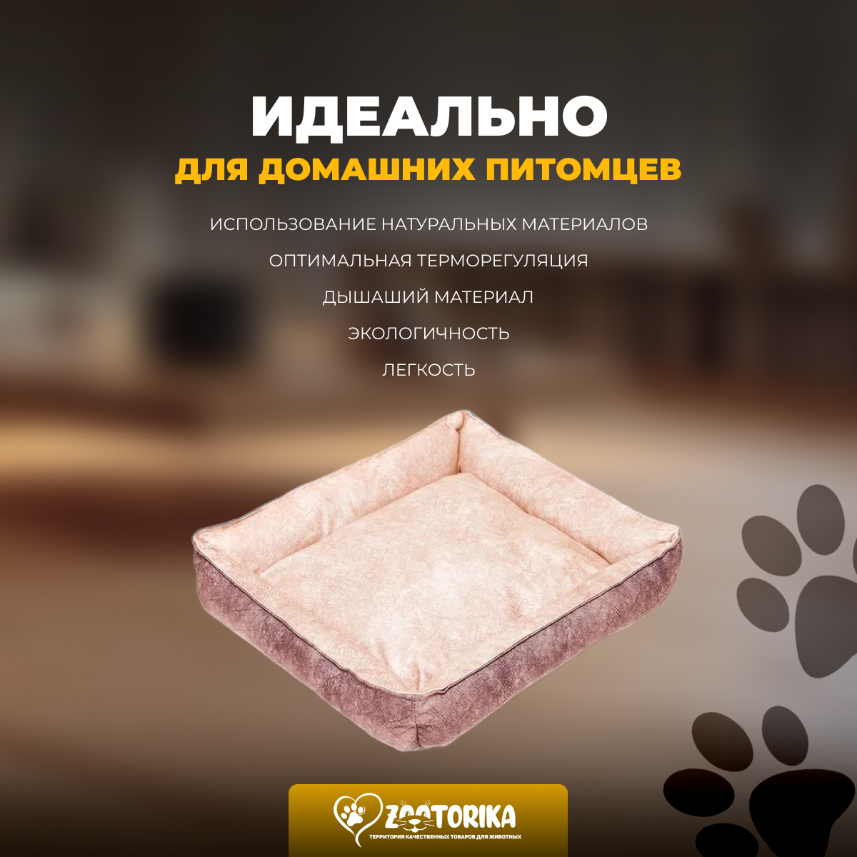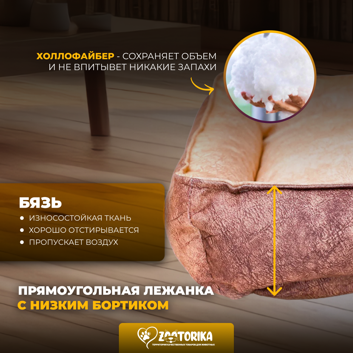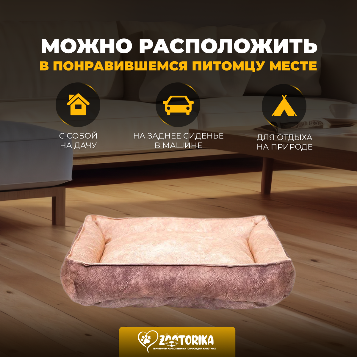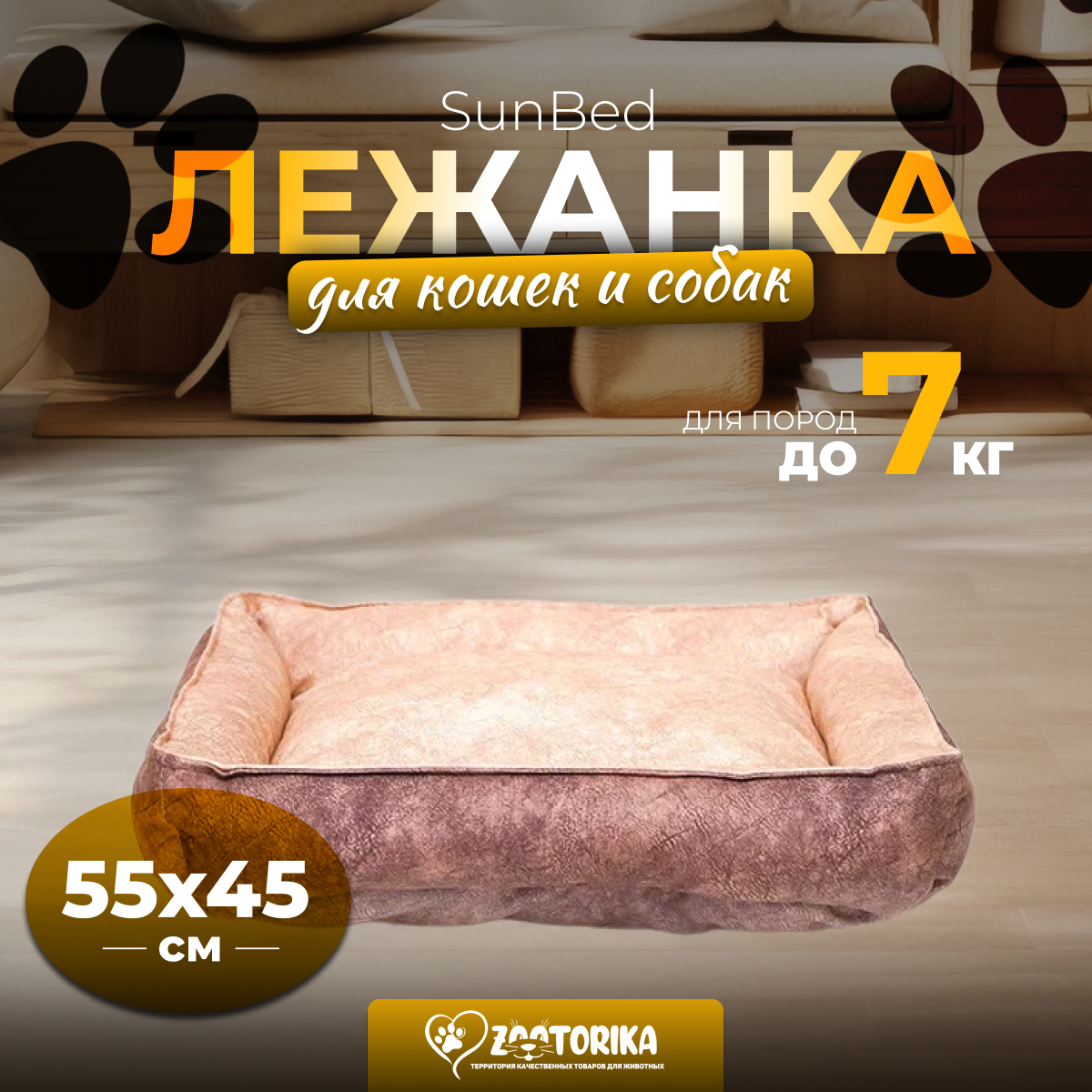 Лежанка для кошек и собак SunBed прямоугольная из замши, бежевый меланж, 55х45 / Лежак для животных мелких и средних пород интересное:
