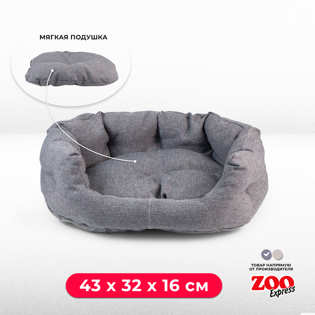 Ниже Вы можете прочитать отзывы на ZOOexpress Лежанка-пухлик со стяжкой для собак и кошек NORD №1, 43х32х16 см, серый, ознакомится с подробными характеристиками, посмотреть интересные обзоры и фотографии на ZOOexpress Лежанка-пухлик со стяжкой для собак и кошек NORD №1, 43х32х16 см, серый.