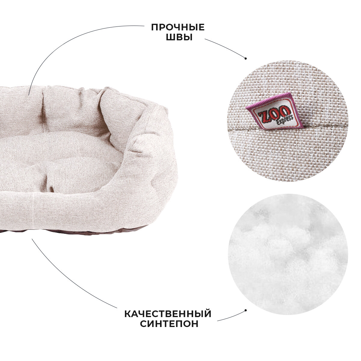 ZOOexpress Лежанка-пухлик со стяжкой для собак и кошек NORD №3, 55х40х20 см, бежевый