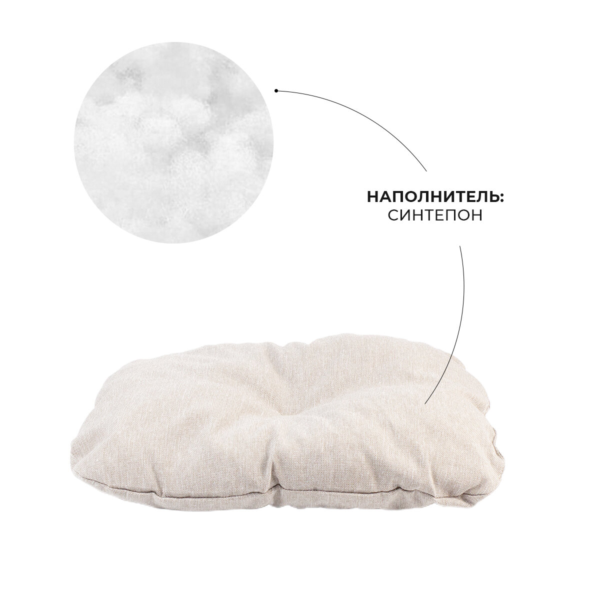 ZOOexpress Лежанка-пухлик со стяжкой для собак и кошек NORD №2, 49х36х18 см, бежевый