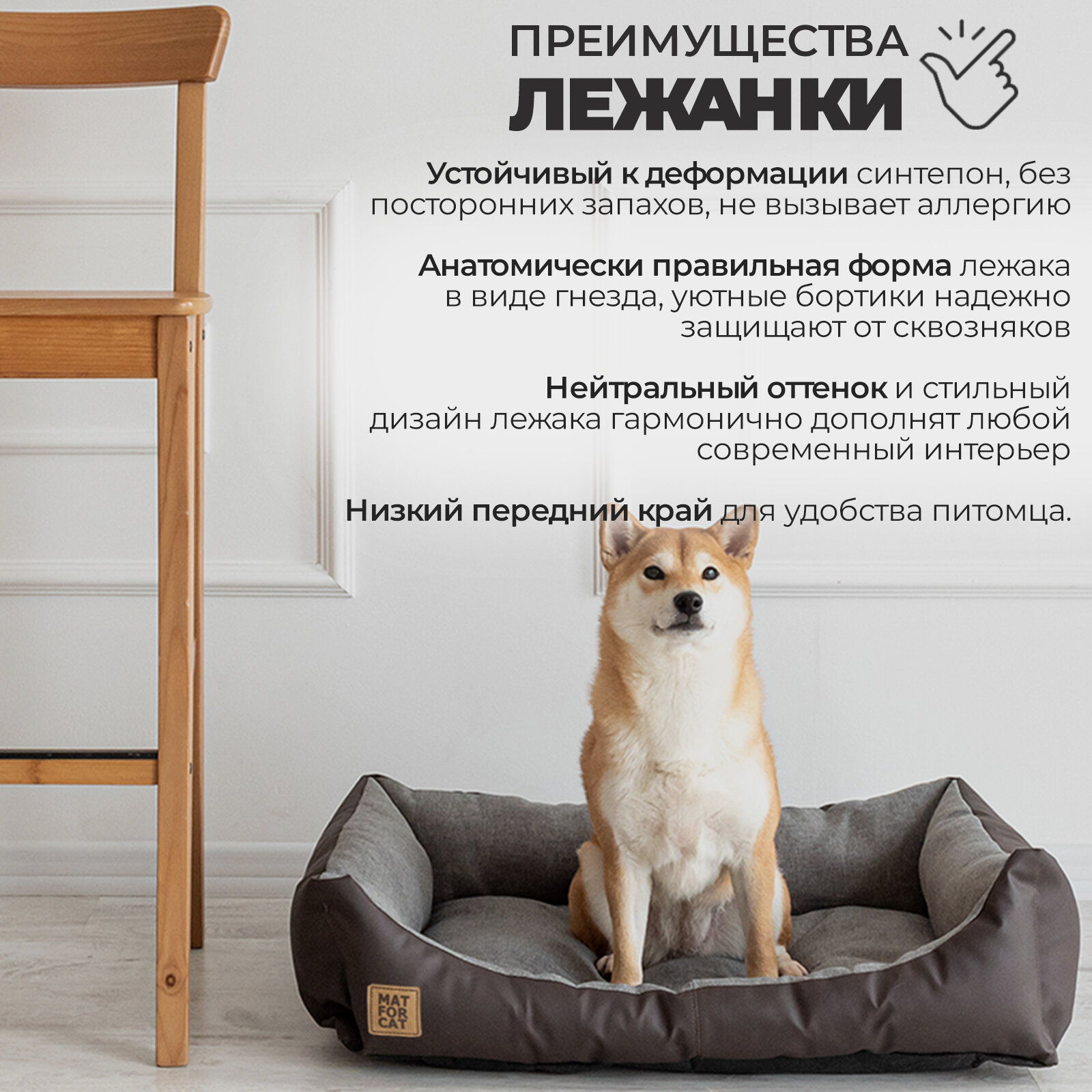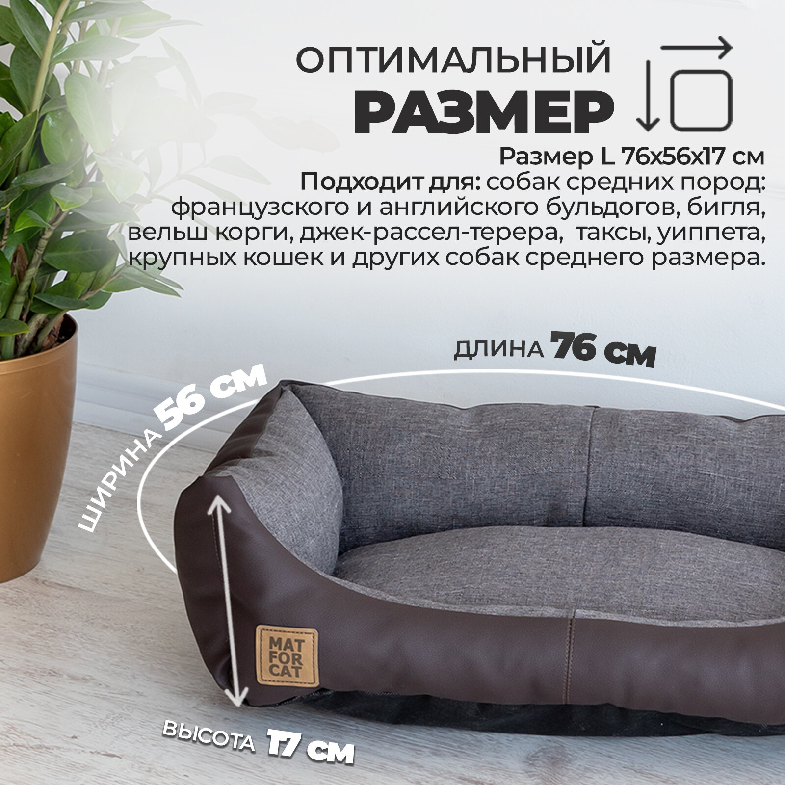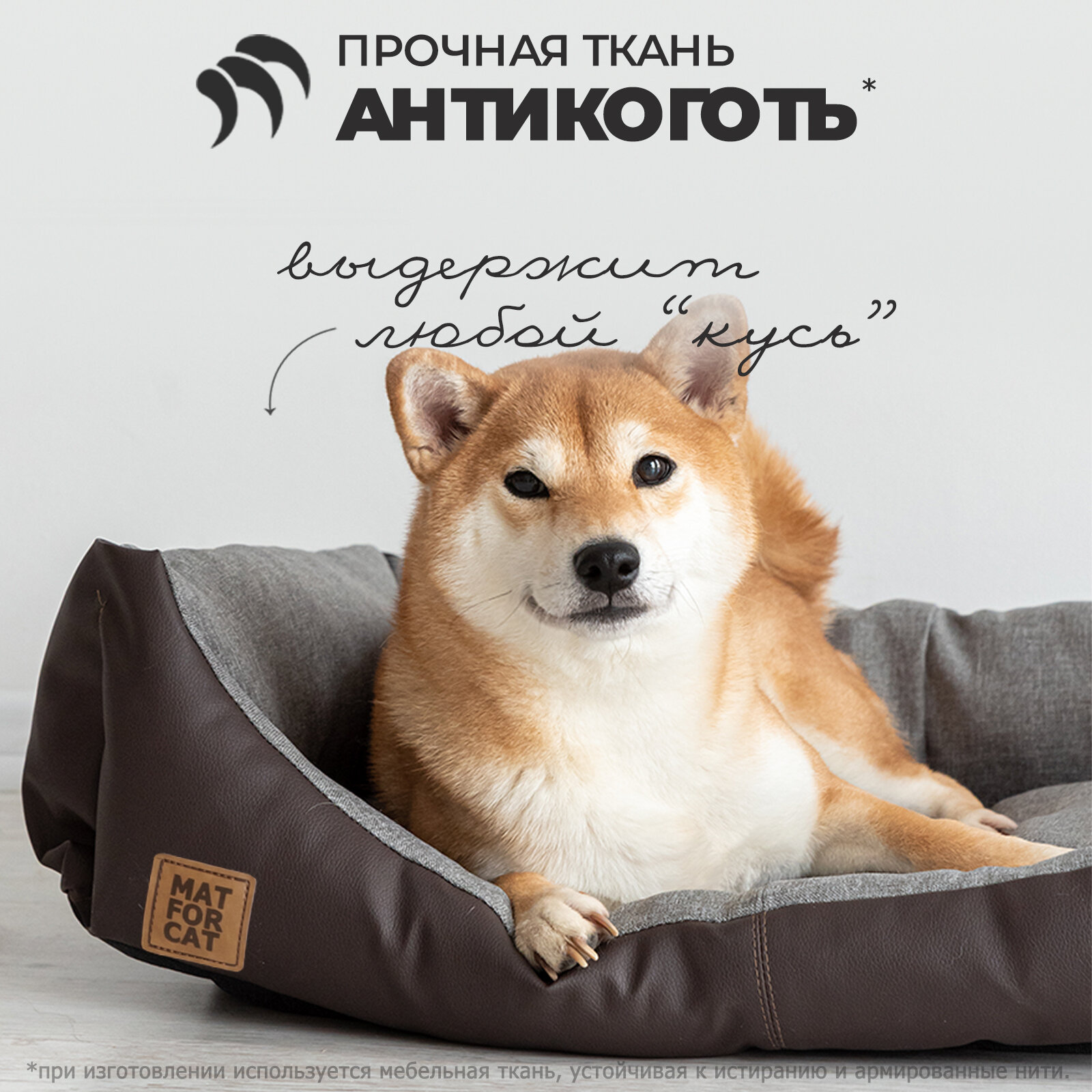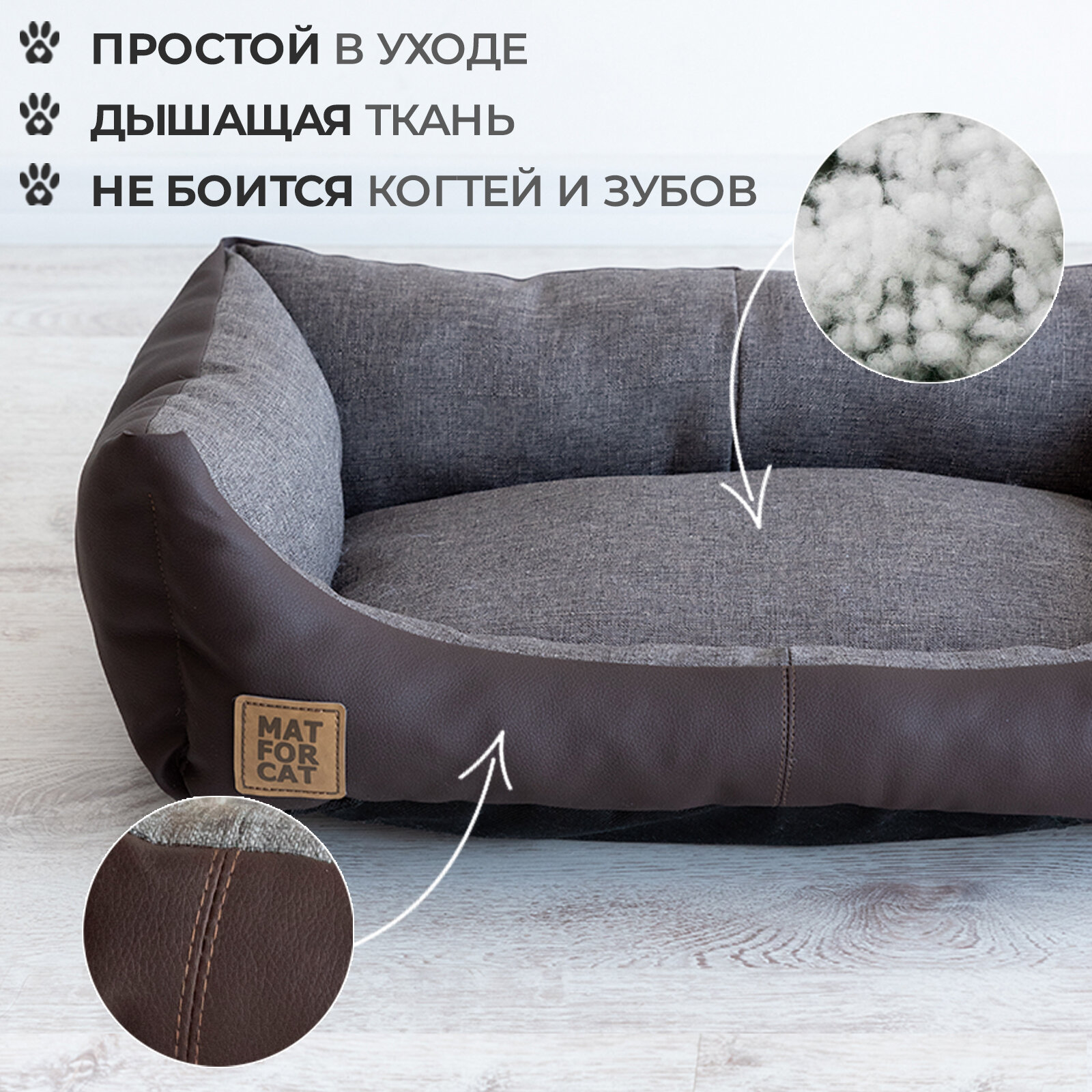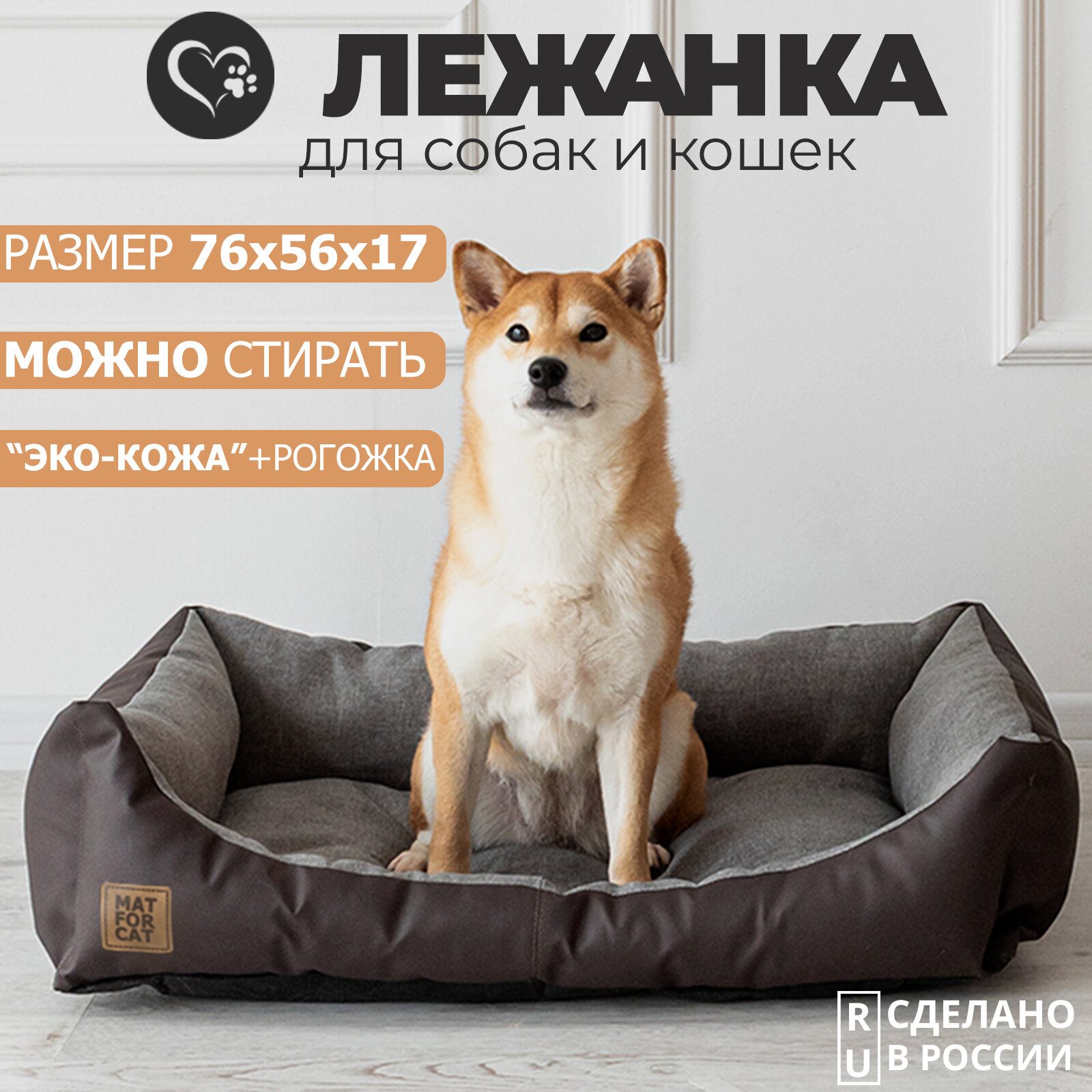 Лежак для собак и кошек "Экокожа+Рогожка" L 76*56*17см Matforcat Цвет: Серый интересное: