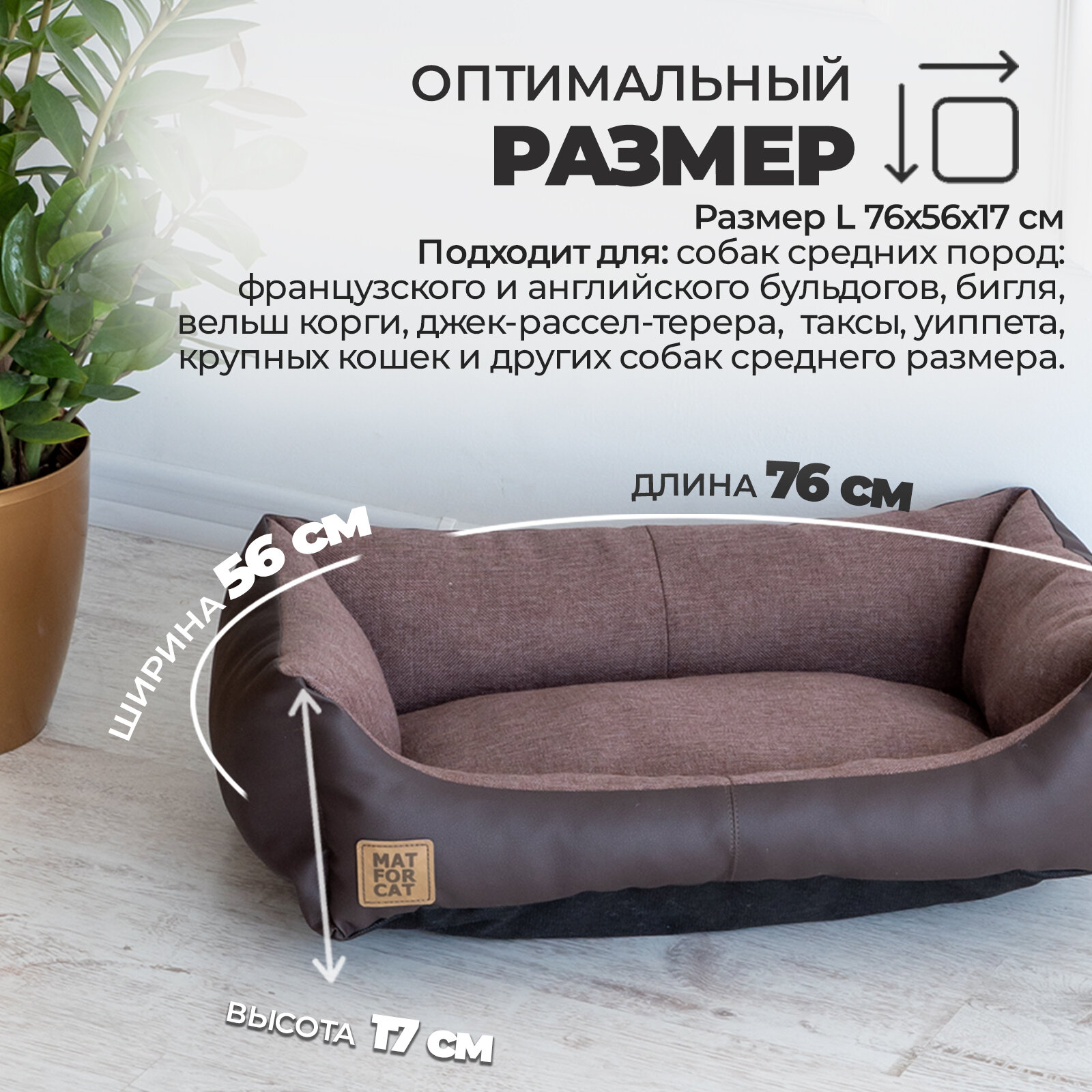 Лежак для собак и кошек "Экокожа+Рогожка" L 76*56*17см Matforcat Цвет: Шоколад интересное: