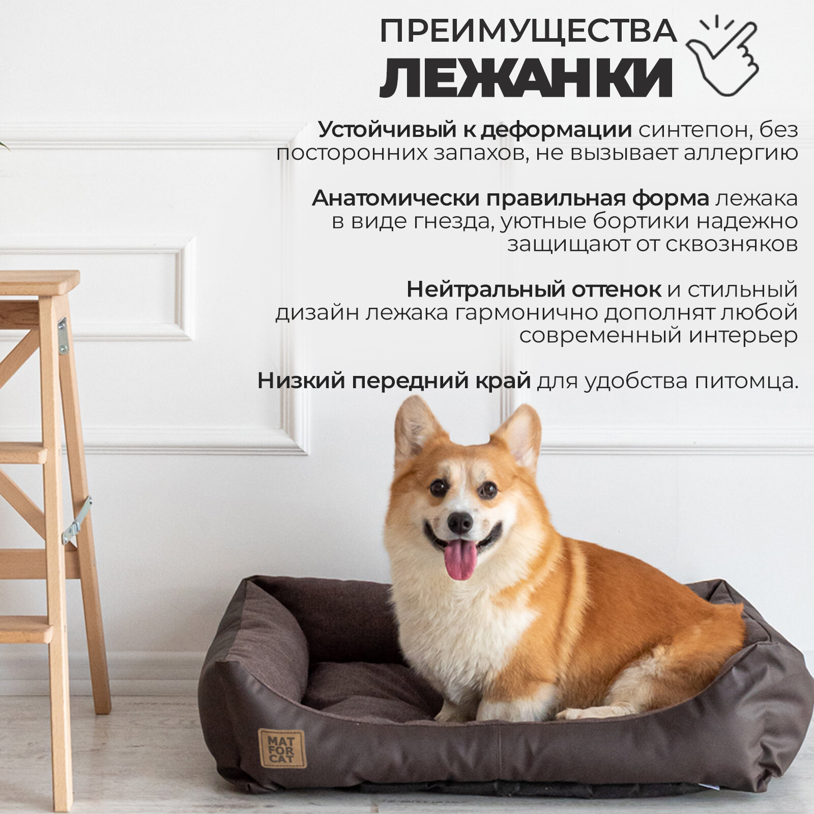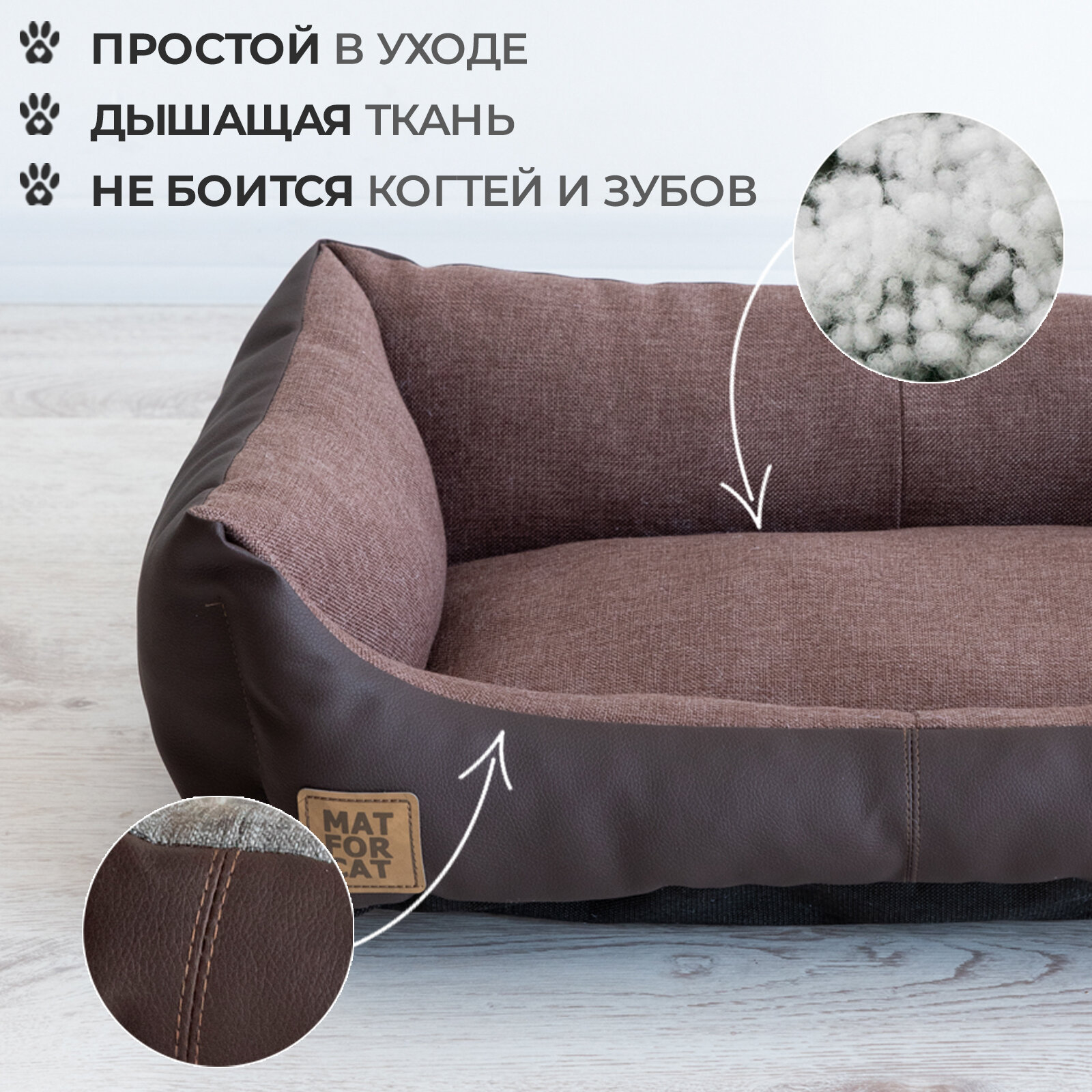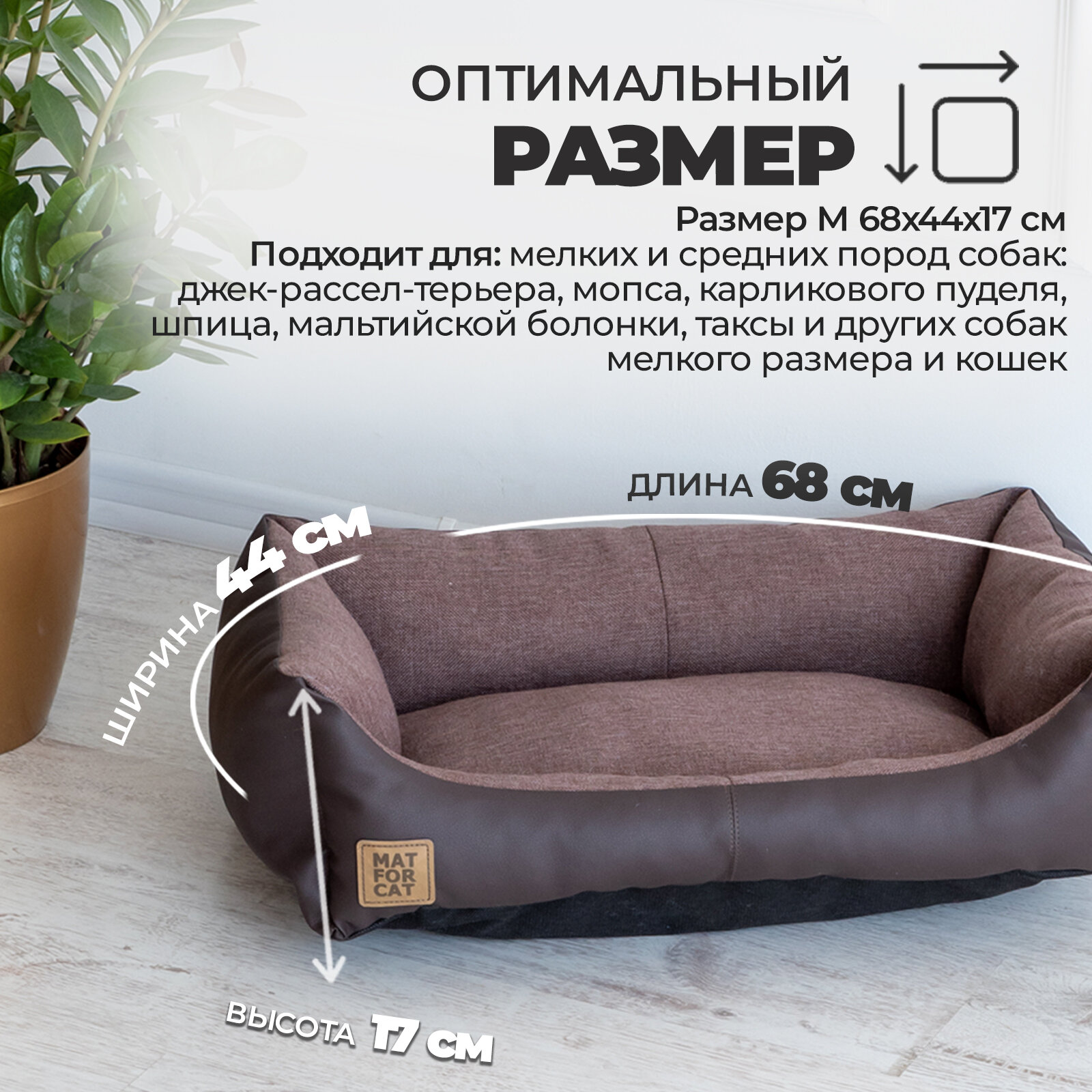 Лежак для собак и кошек "Экокожа+Рогожка" M 68*44*17см Matforcat Цвет: Шоколад интересное: