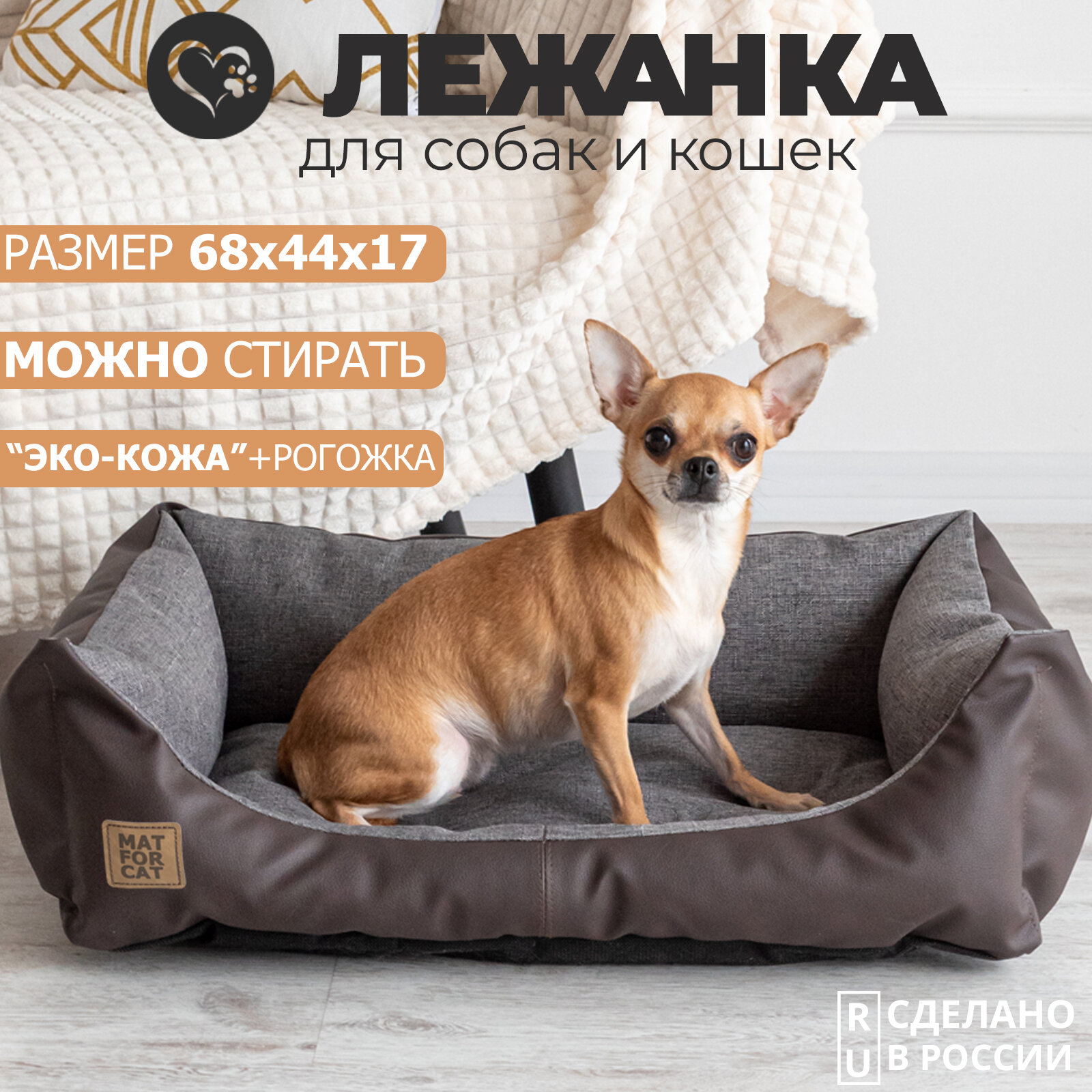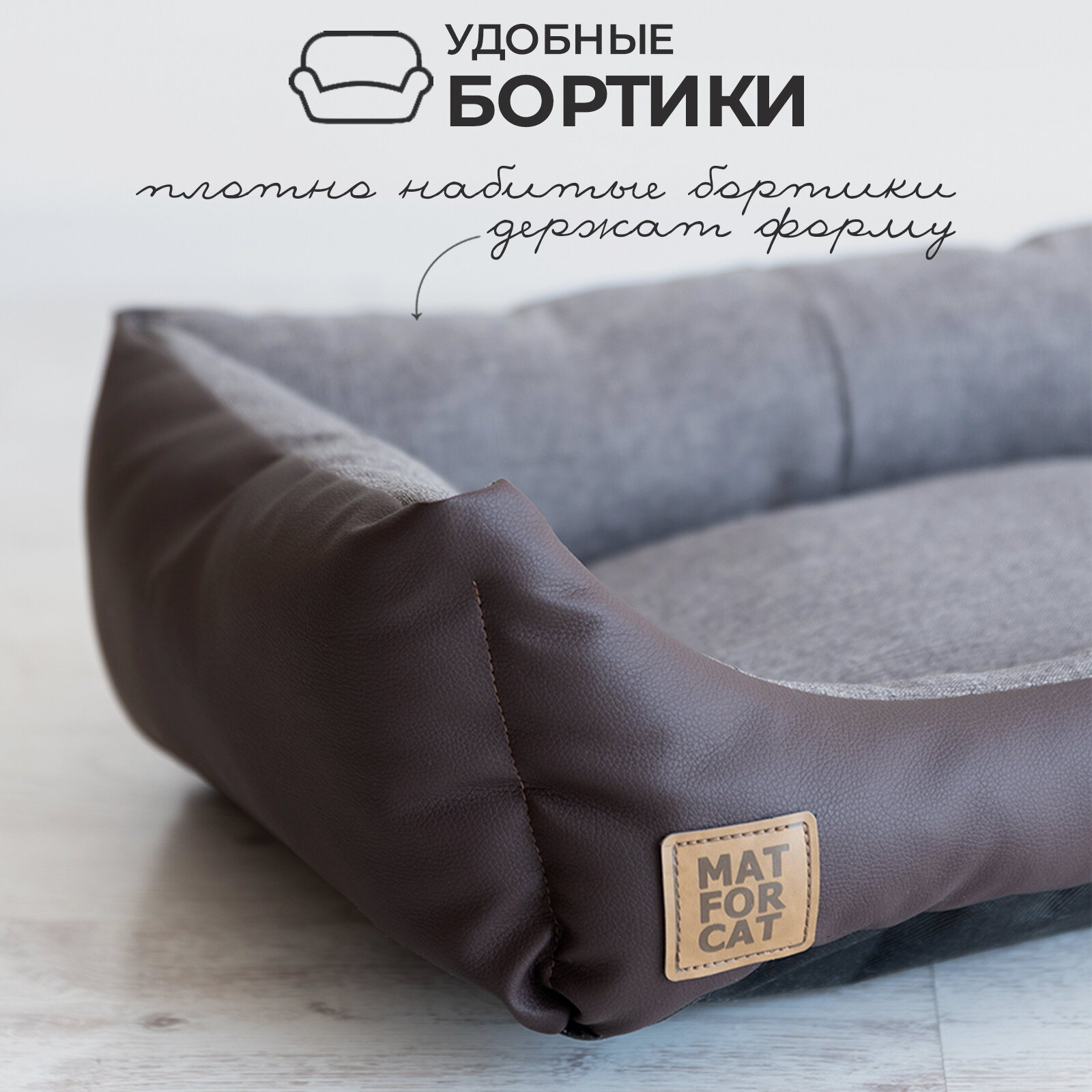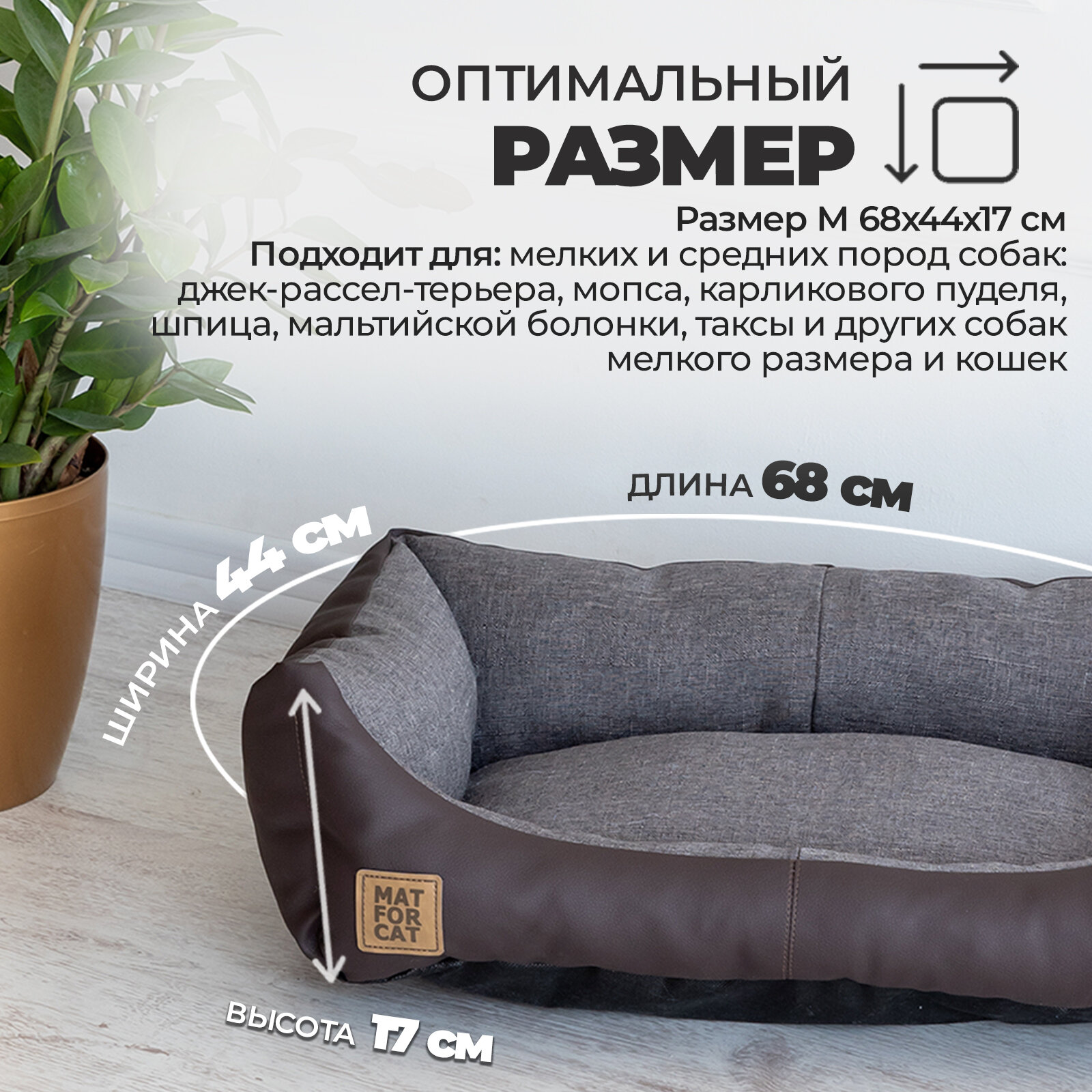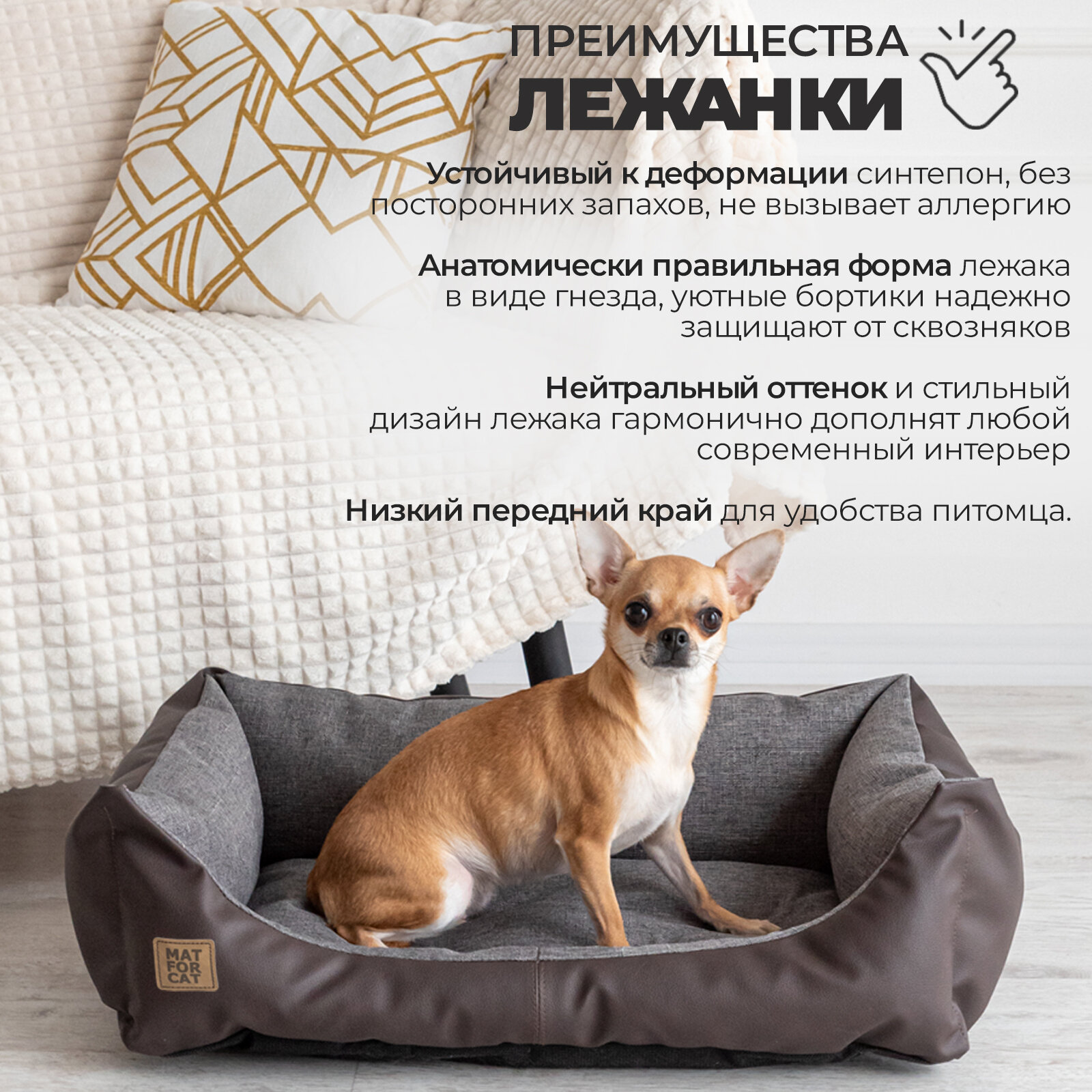 Лежак для собак и кошек "Экокожа+Рогожка" M 68*44*17см Matforcat Цвет: Серый интересное: