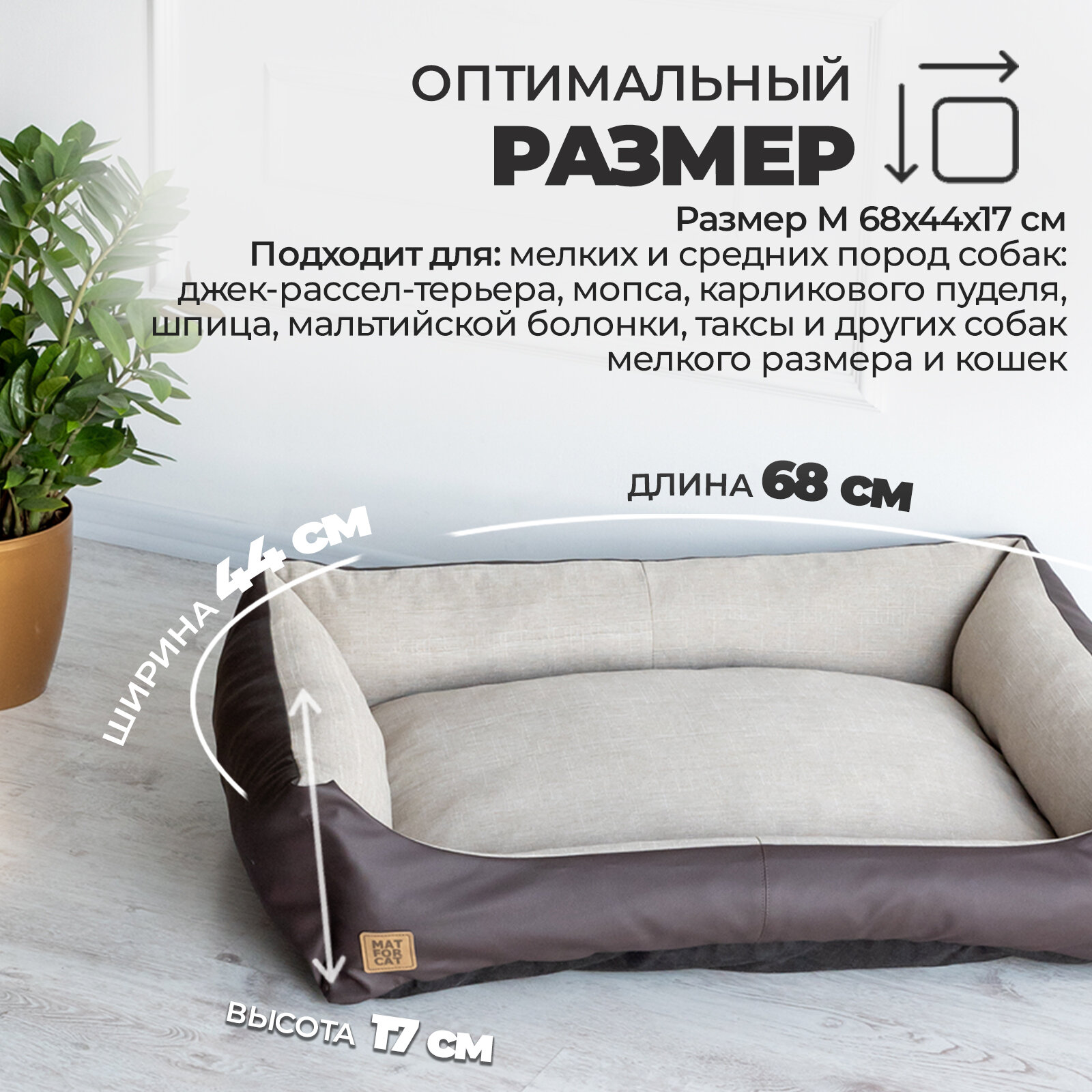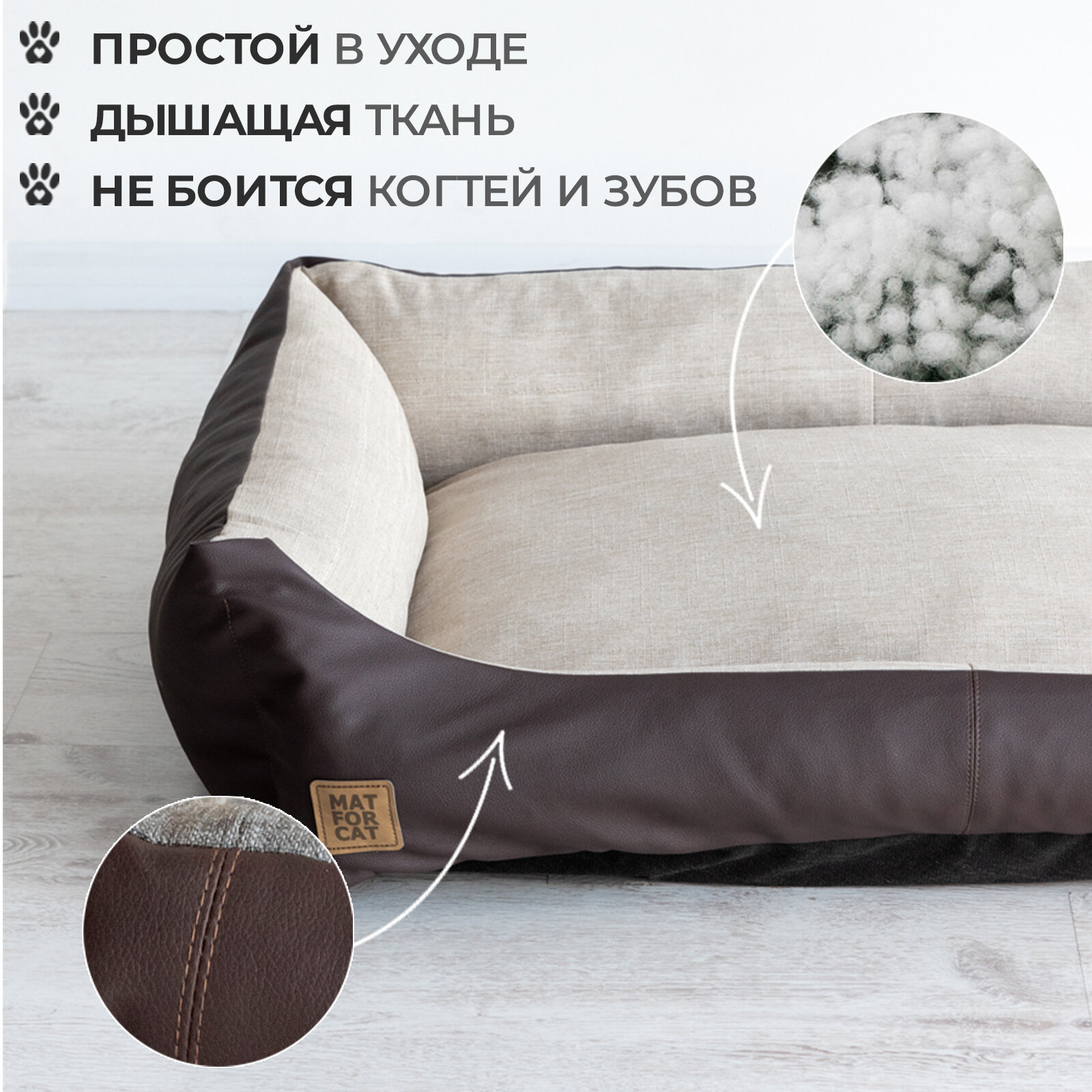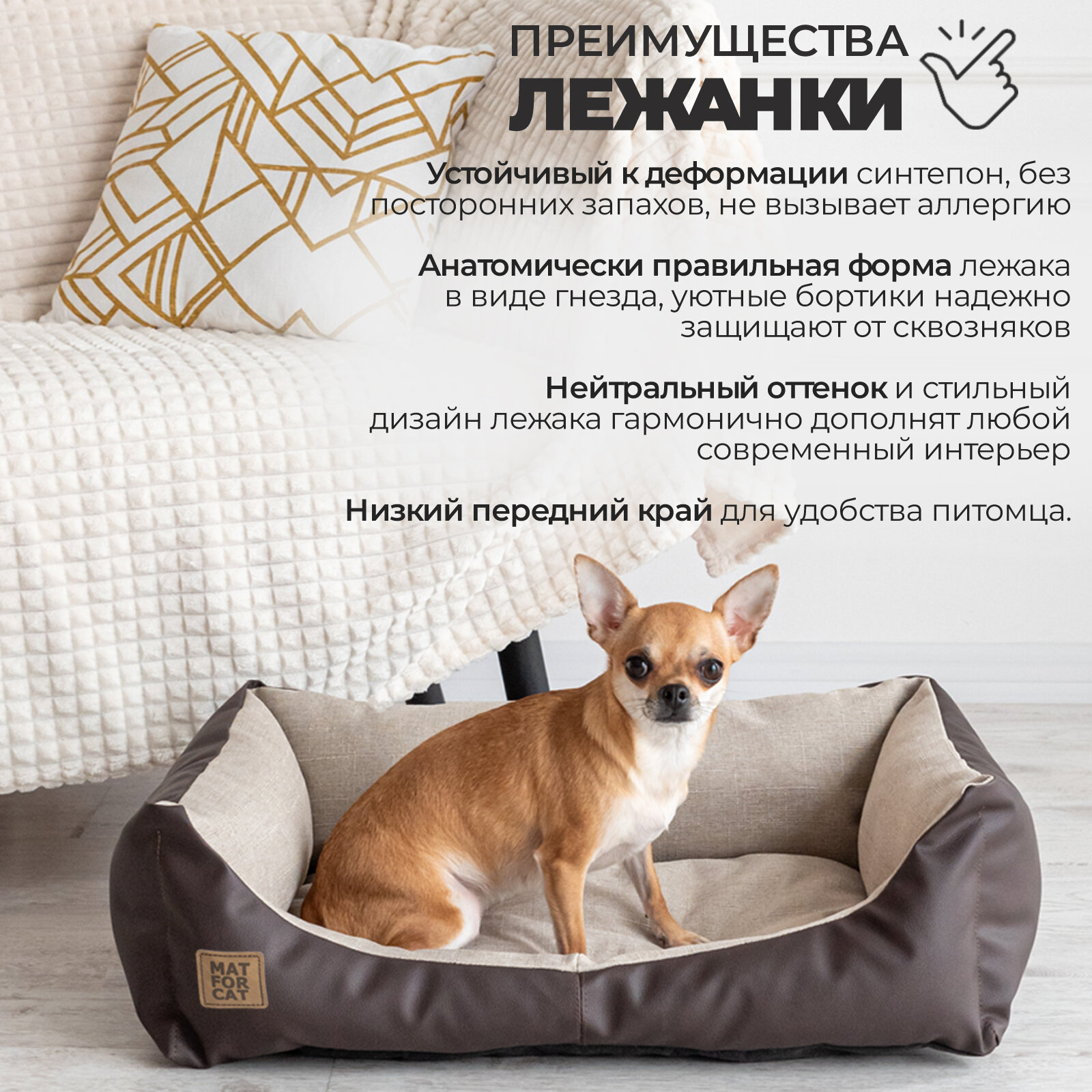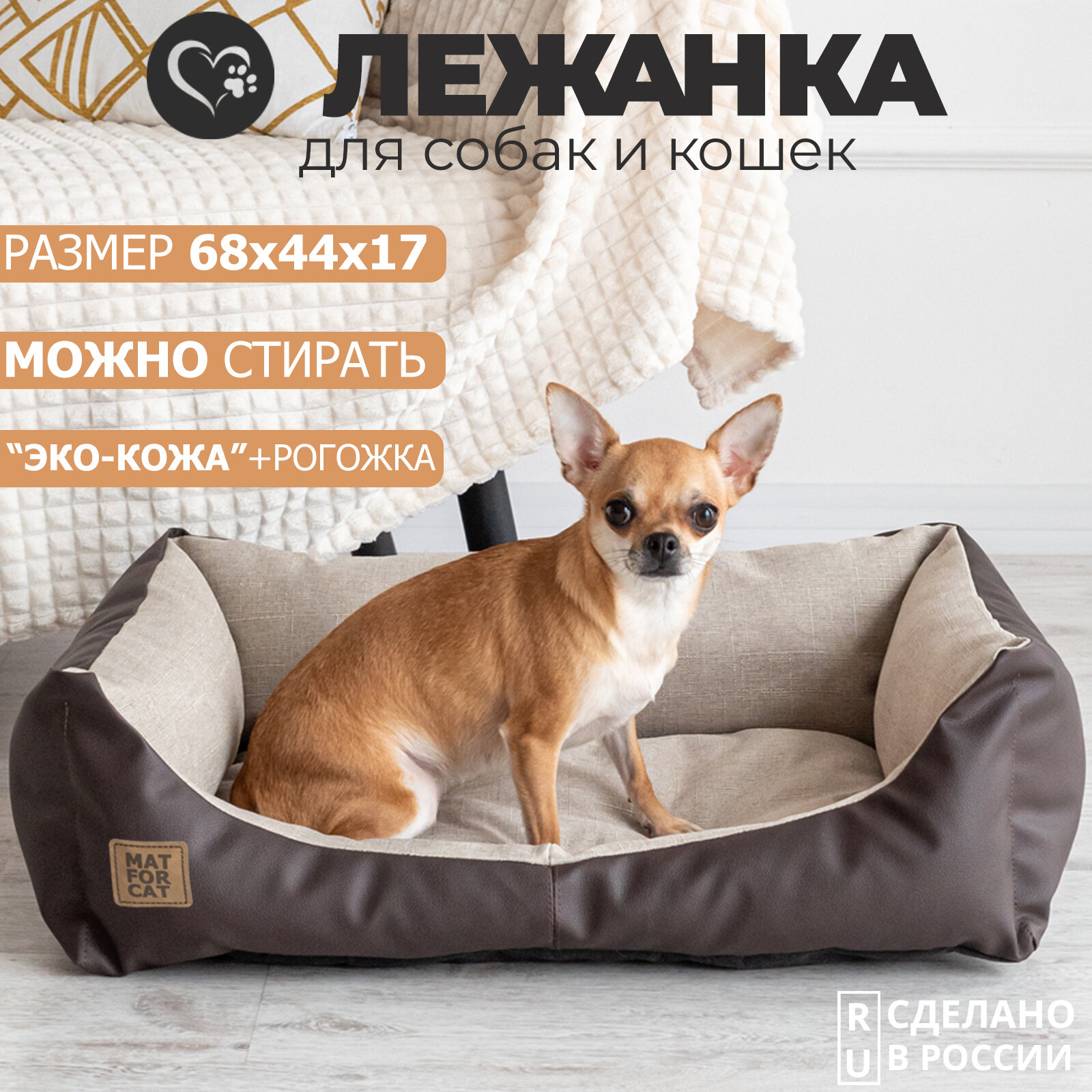 Лежак для собак и кошек "Экокожа+Рогожка" M 68*44*17см Matforcat Цвет: Бежевый интересное: