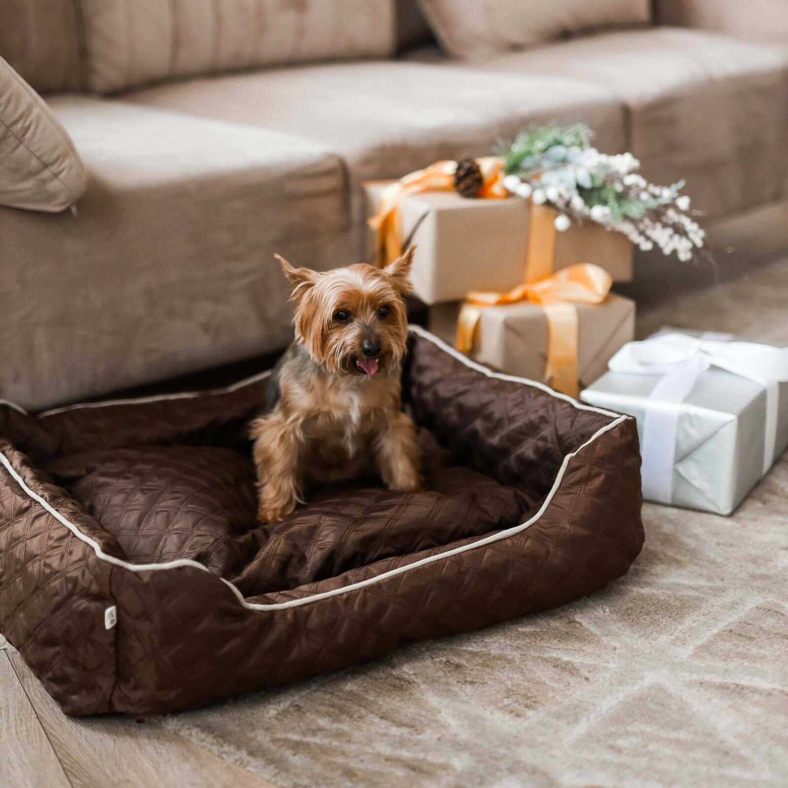 Купить Лежанка для животных, для кошек, для собак, "Не Один Дома" Челси, коричневый, S, 47х37х17 см