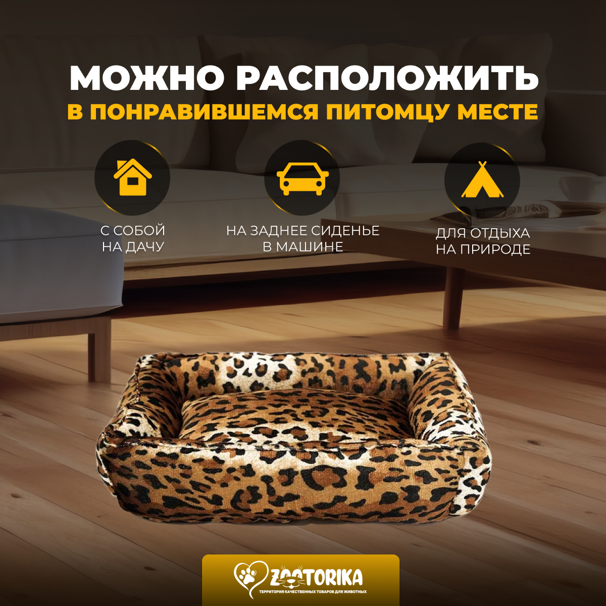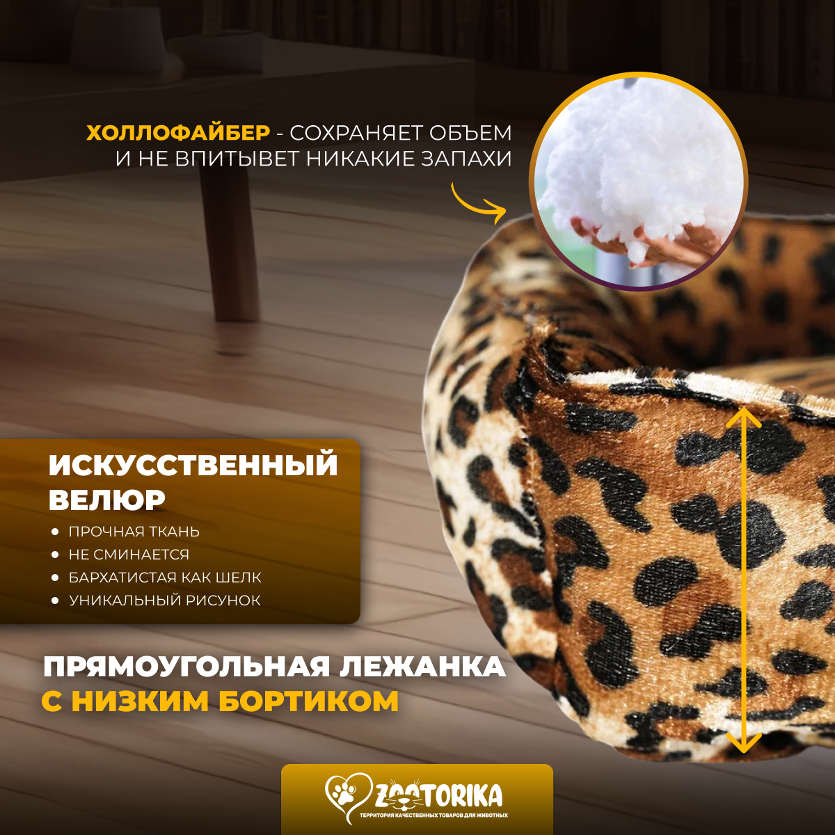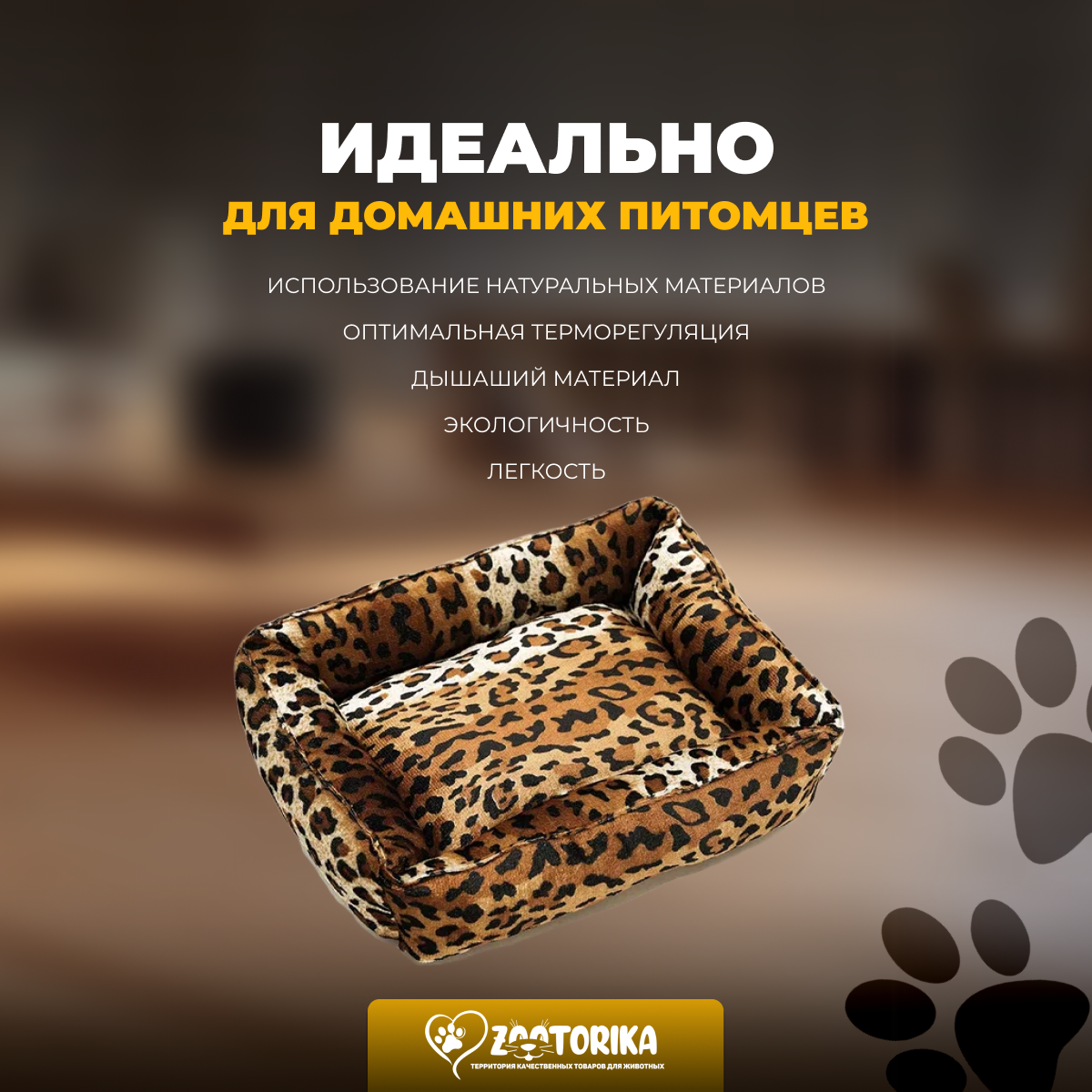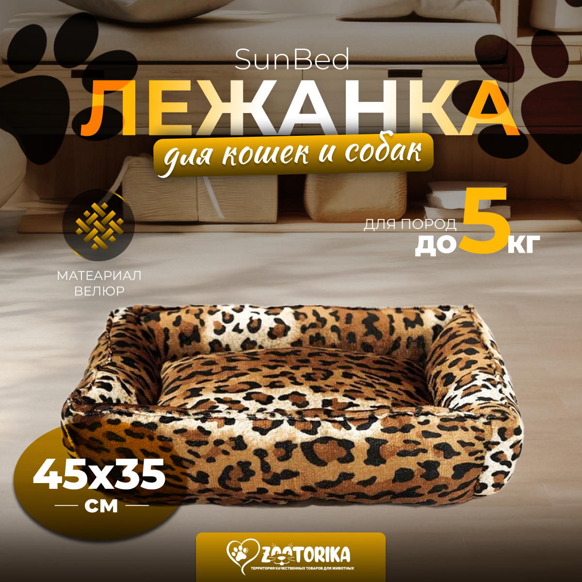 Лежанка для кошек и собак SunBed прямоугольная из велюра, расцветки Леопард/Гепард, 45х35 / Лежак для животных мелких пород интересное: