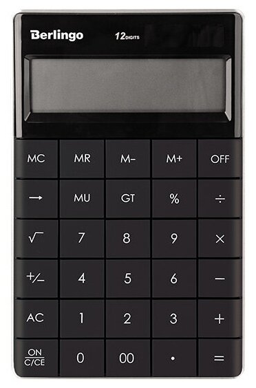 Калькулятор Berlingo с двойным питанием, 12 разрядов, 16,5х10,5х1,3 см, антрацитовый цвет