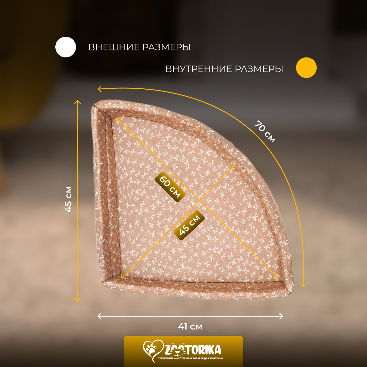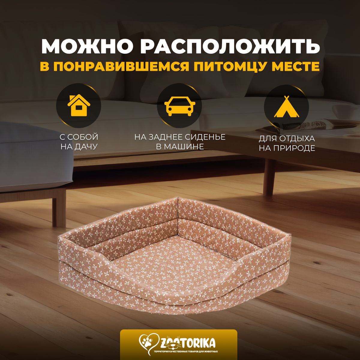 Лежанка для кошек и собак TerraBed угловая "Бантики", коричневая, 70х45 / Лежак для животных мелких пород интересное:
