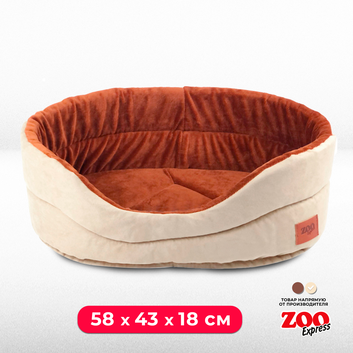 Купить Овальная лежанка для кошек и собак ZOOexpress Classic №5 с плюшем, 58х43х18 см, кремовый