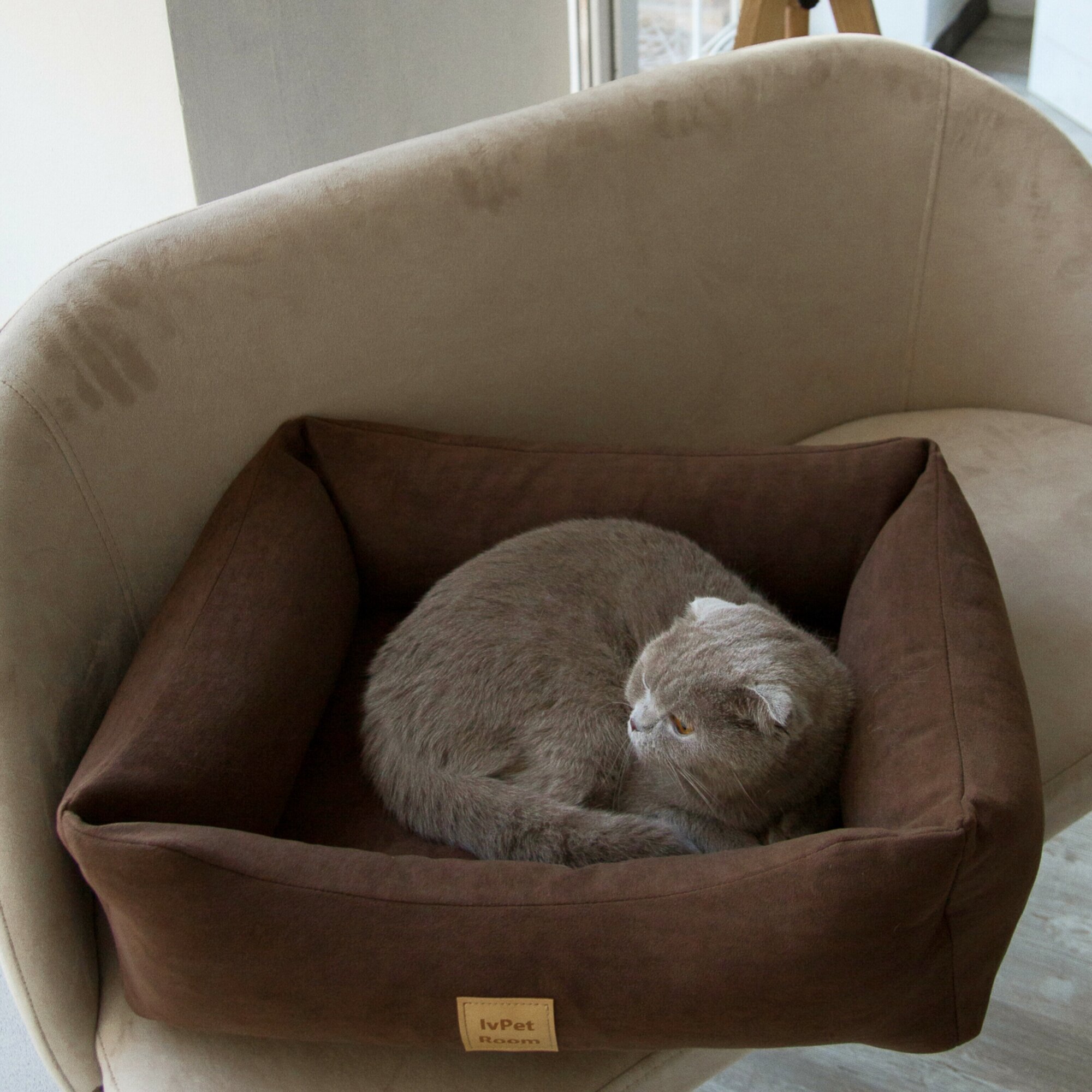 Лежанка для собак и кошек со съемным чехлом IvPetRoom Comfort S 60x50 микровелюр коричневый