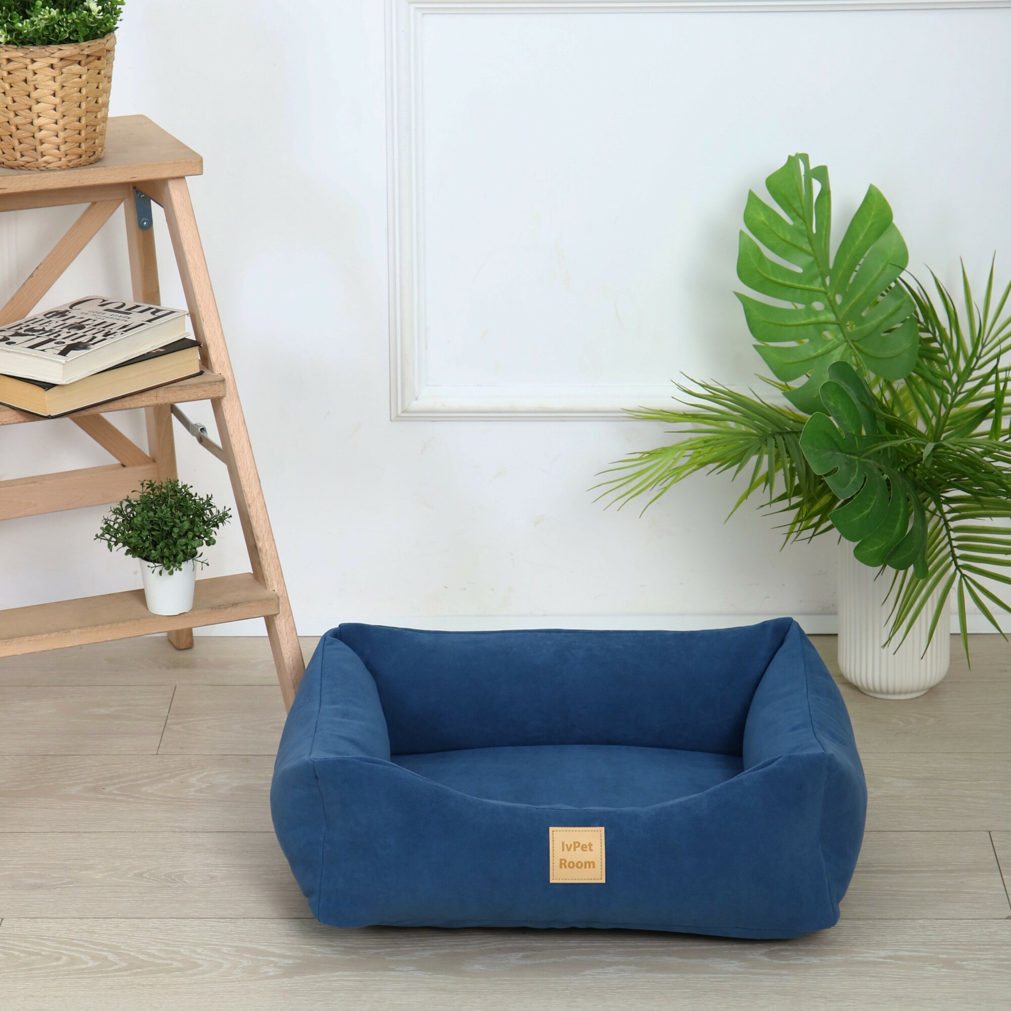 Лежанка для собак и кошек со съемным чехлом IvPetRoom Comfort S 60x50 микровелюр синий