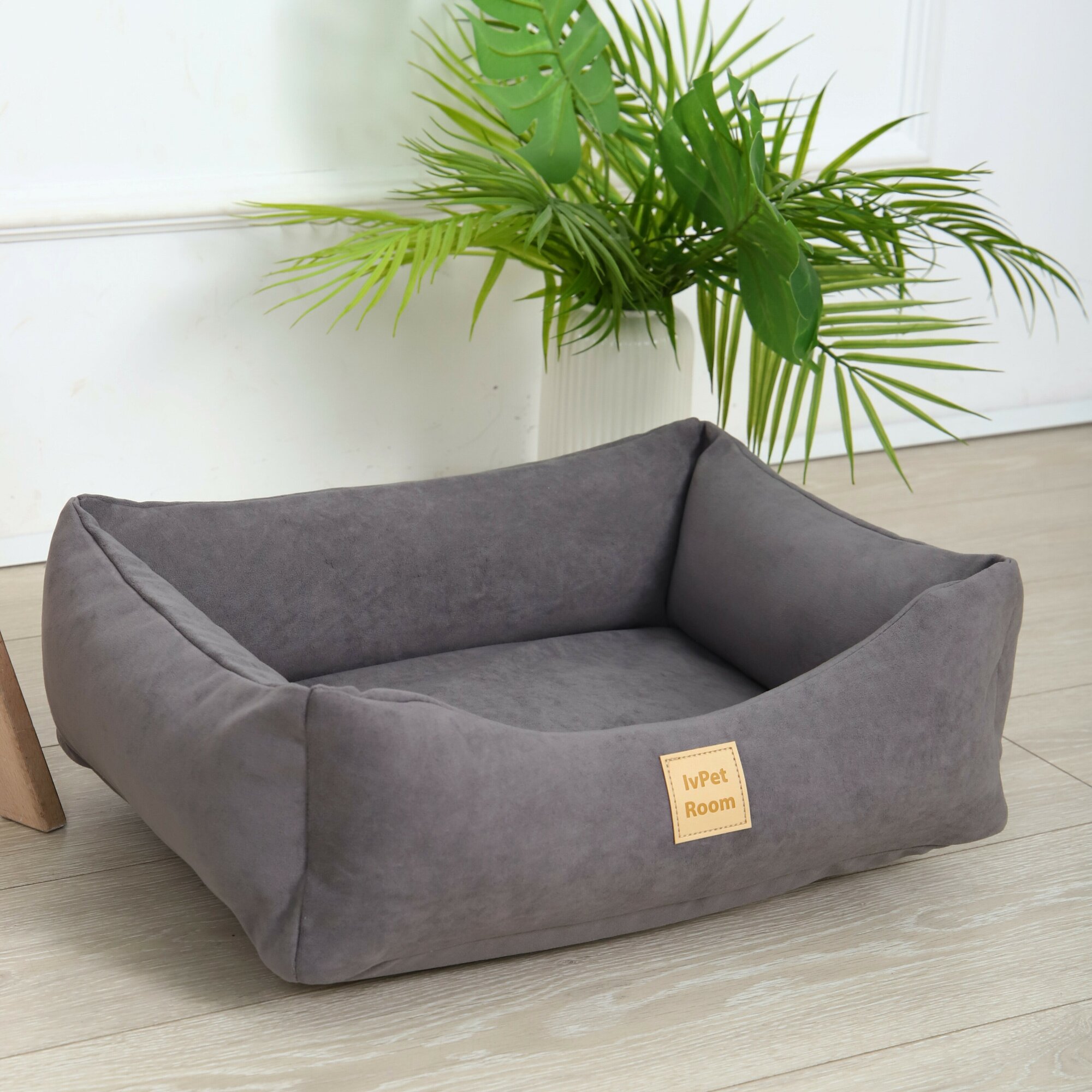 Лежанка для собак и кошек со съемным чехлом IvPetRoom Comfort S 60x50 микровелюр серый