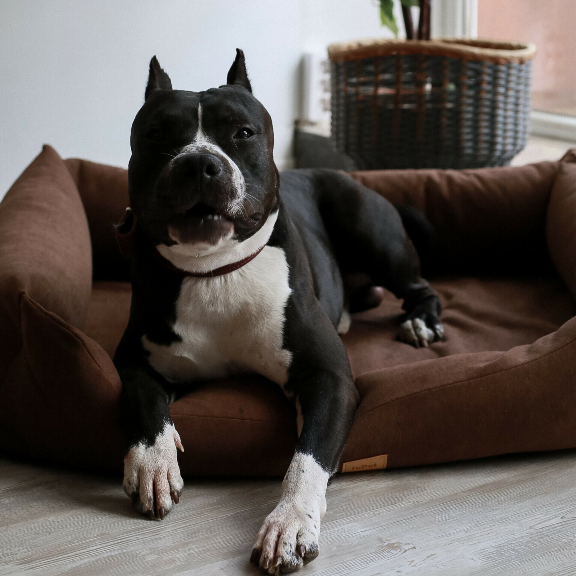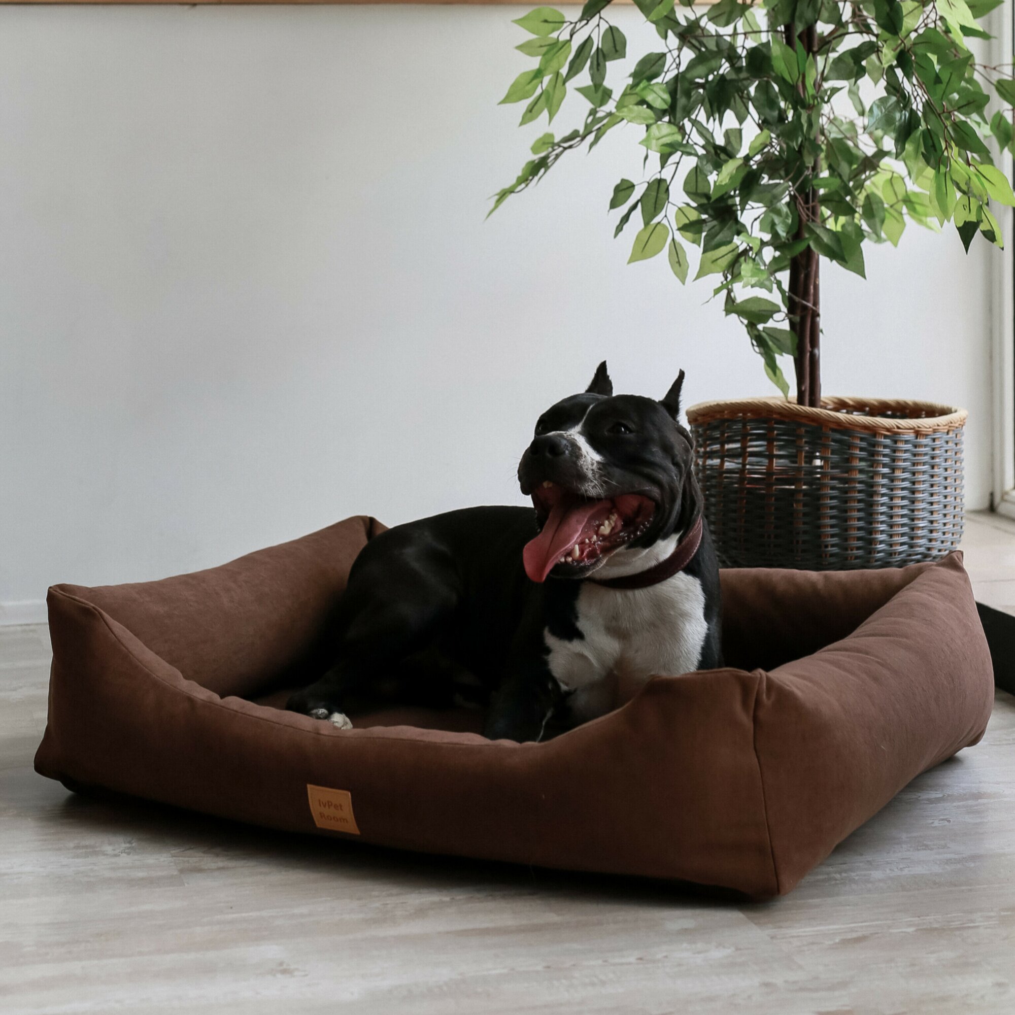 Лежанка для собак со съемным чехлом IvPetRoom Comfort XL 120x90 микровелюр коричневый