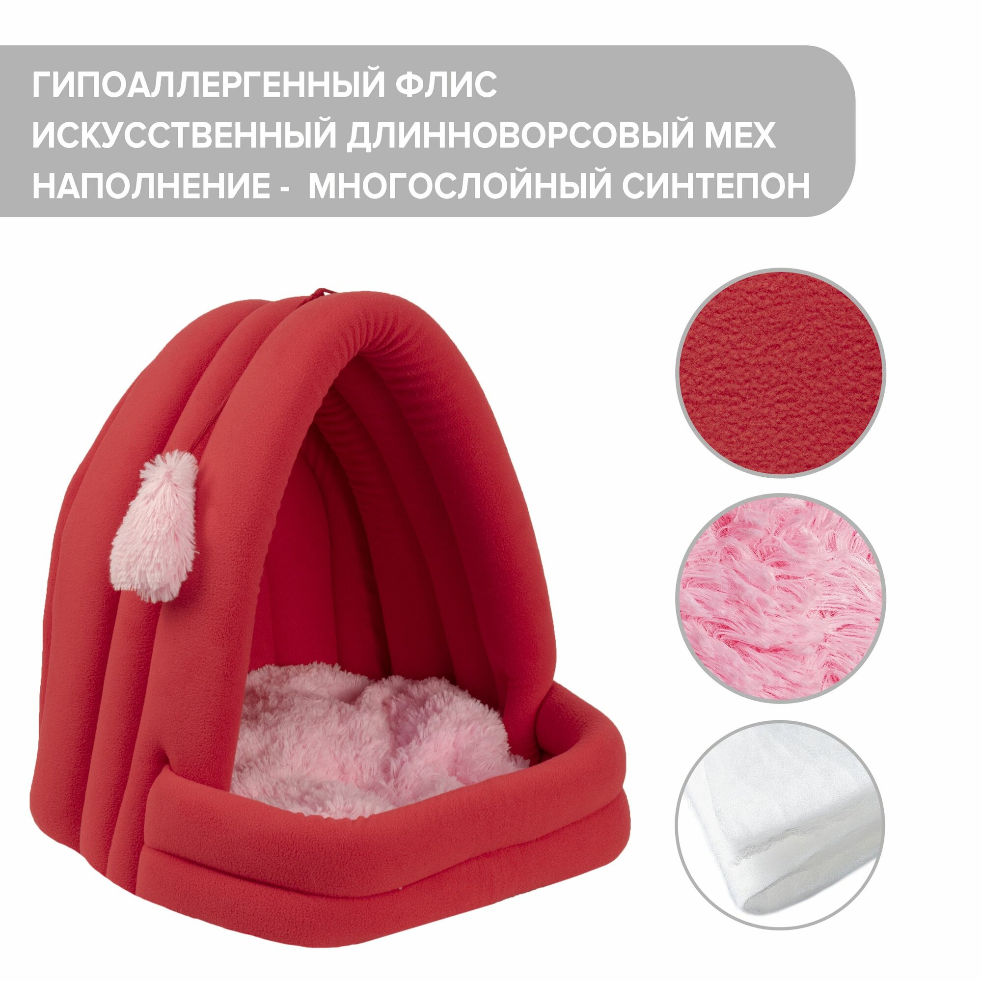 Купить Домик для кошки красный мягкий ZooMoDa, лежанка розовая, лежак с игрушкой