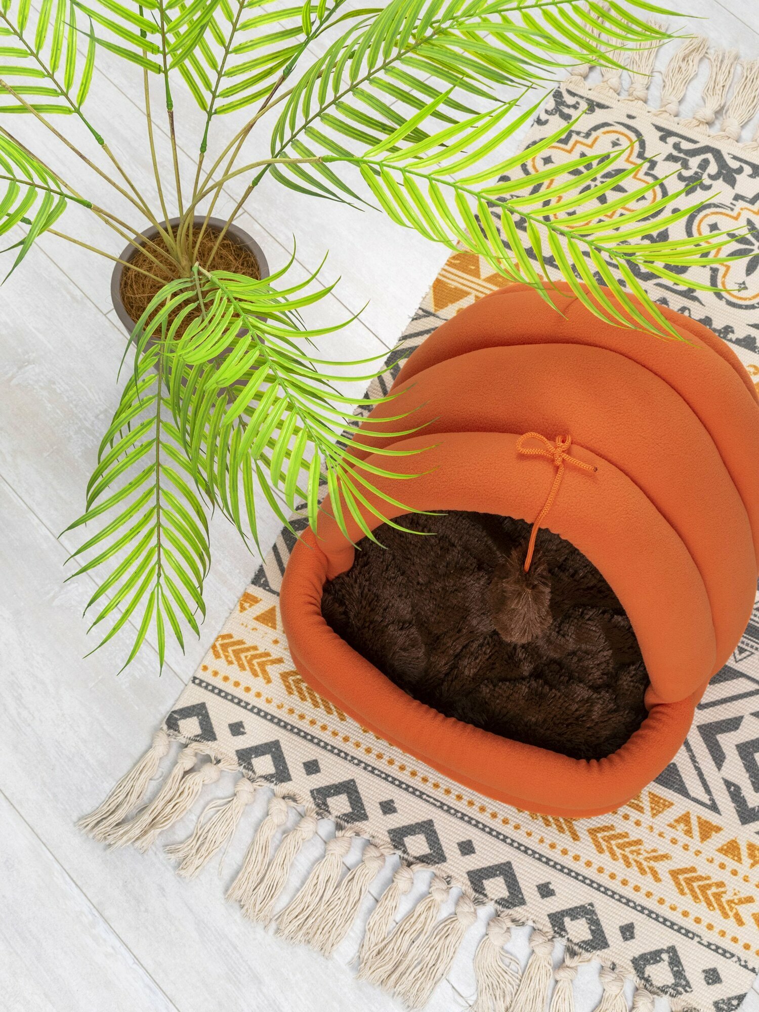 Домик для кошки мягкий с игрушкой ZooMoDa, лежанка оранжевая, съемная подстилка интересное: