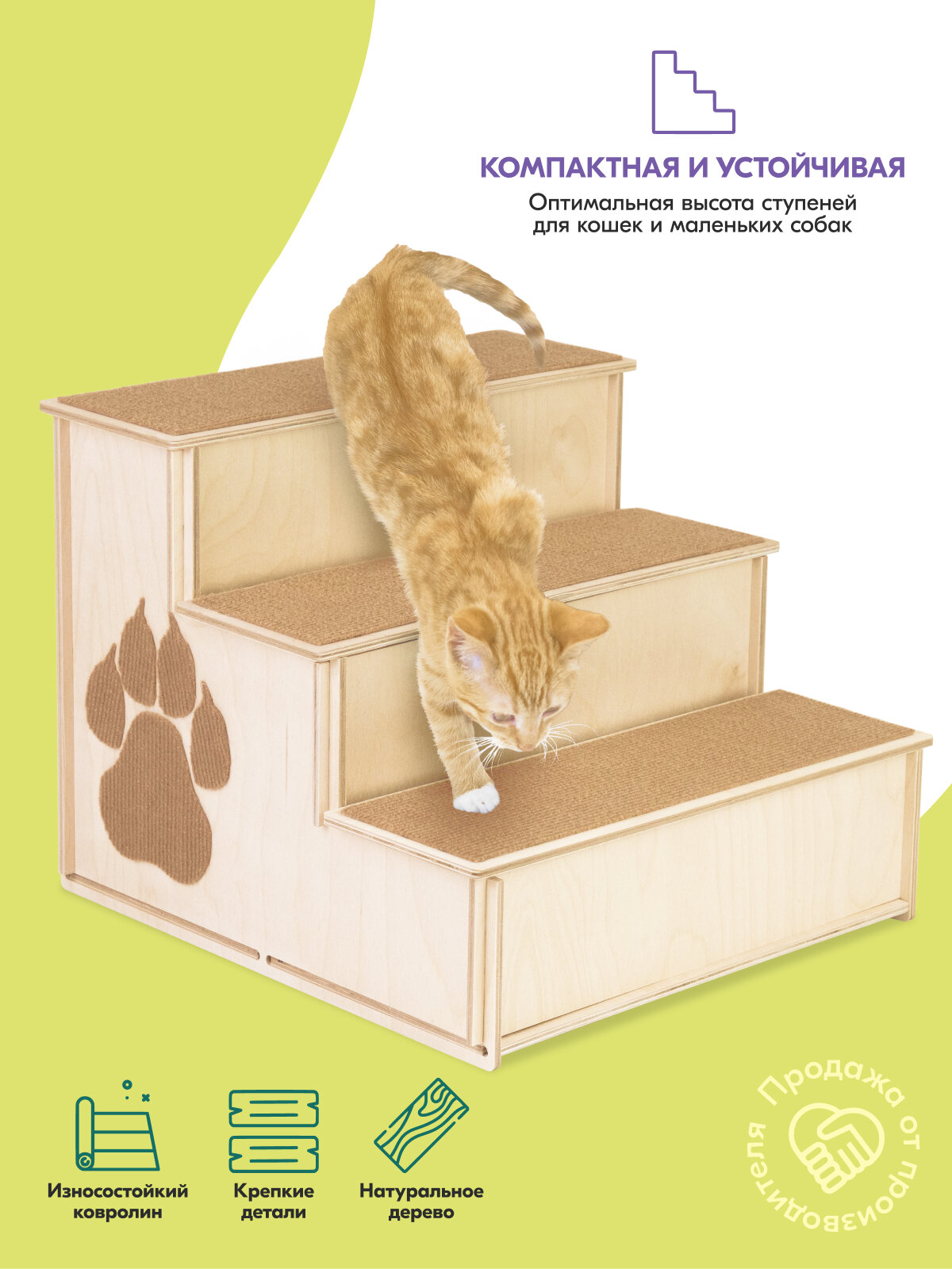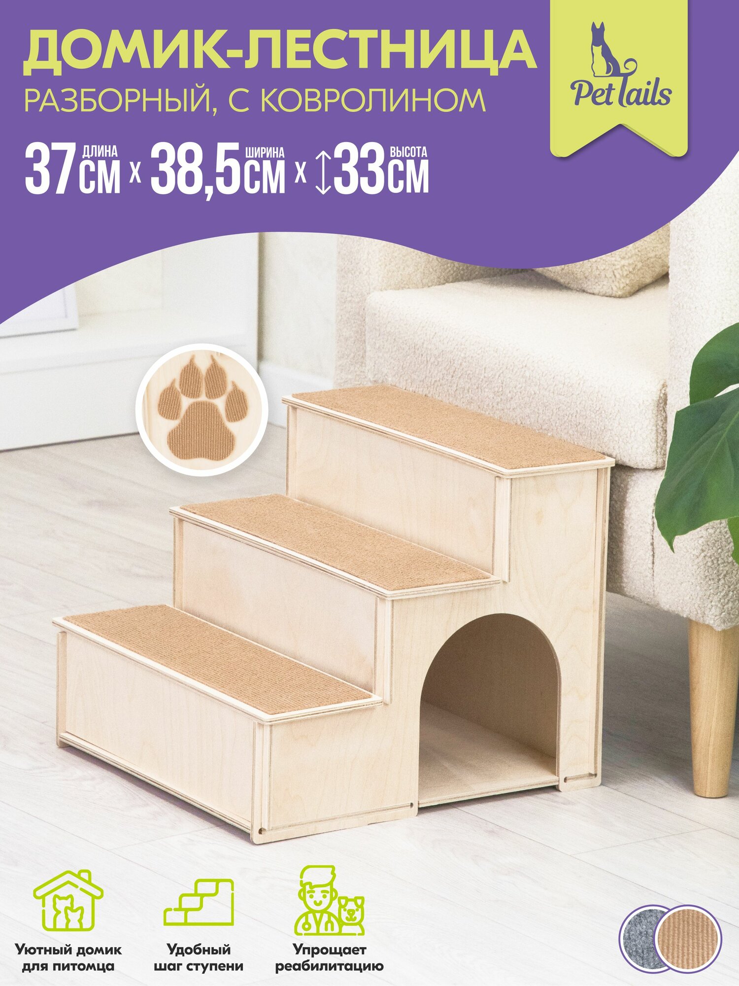Домик-лестница разборный "PetTails", 37 х 38.5 х h33см (фанера, ковролин) бежевый интересное: