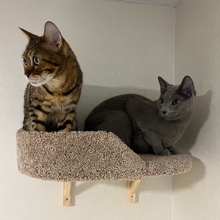 Лежанка для кошек, Моя Котя, настенная, левосторонняя, ковролин светло-серый