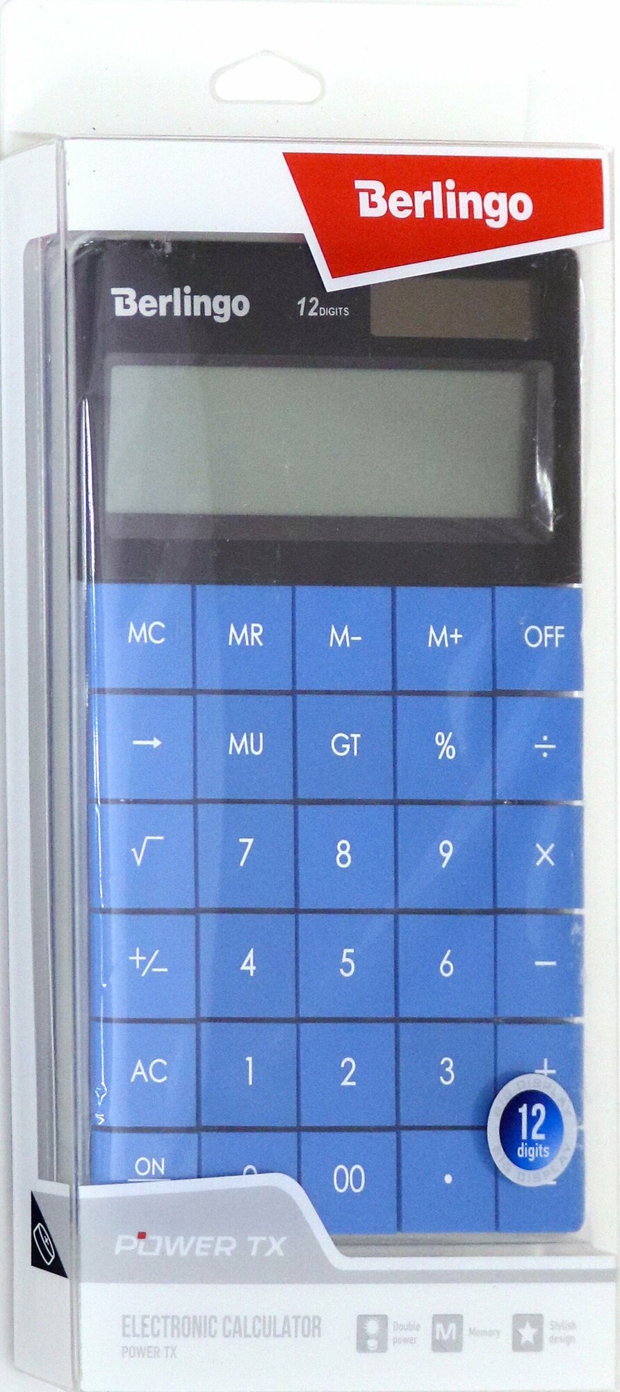 Калькулятор настольный Berlingo "Power TX", 12 разрядов, двойное питание, синий