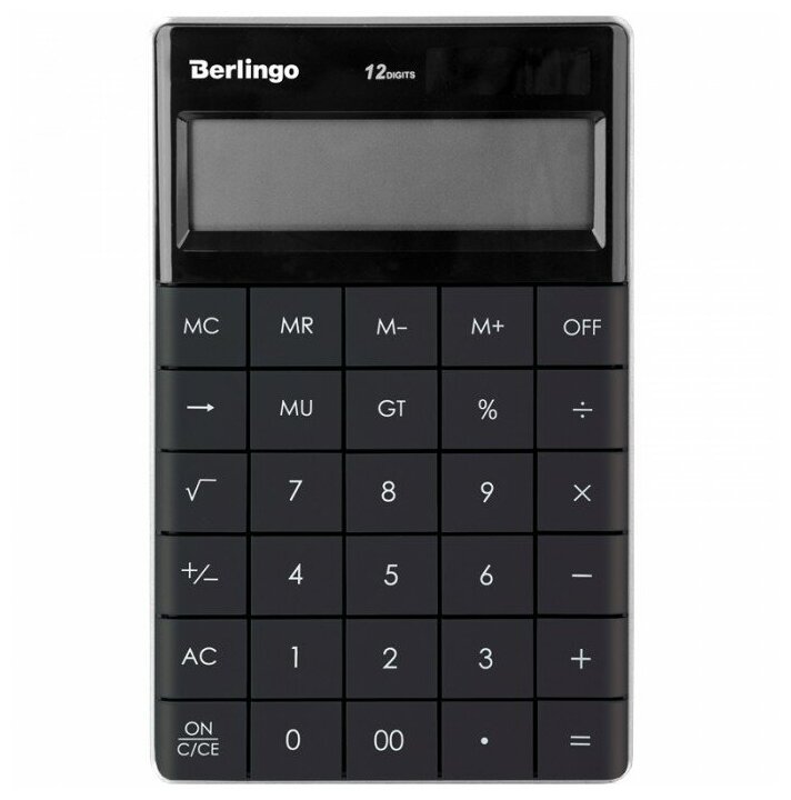 Калькулятор Berlingo с двойным питанием, 12 разрядов, 16,5х10,5х1,3 см, антрацитовый цвет