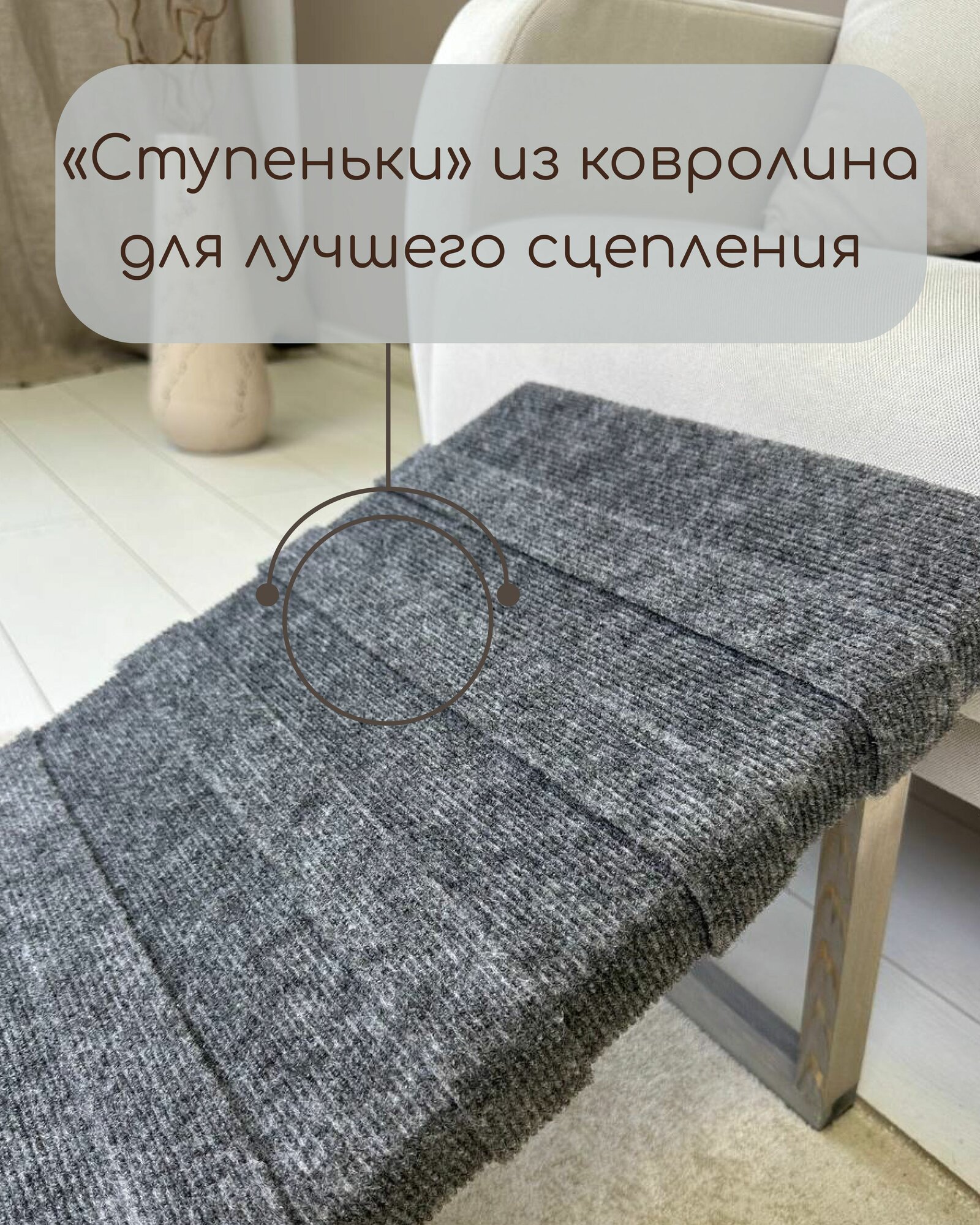 Лестница для животных из дерева (с полосками), (Ковролин) темно-серый 700х350х360 мм интересное: